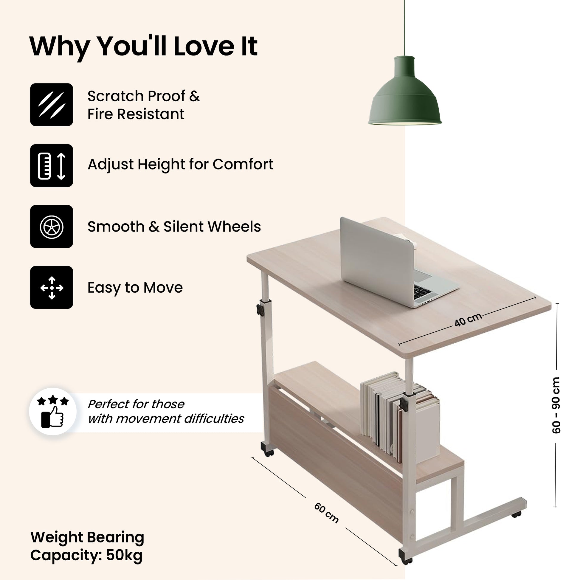 • ADJUSTABLE HEIGHT & STURDY DESIGN: The height-adjustable legs cater to both sitting and standing positions, accommodating up to 50 kg of weight.
