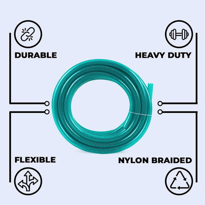 Basic PVC with Nylon Braided Water Pipe 10 Meter | Water Pipe for Garden, Car & Pet Cleaning | Easy to Use, & Leak Proof Hose Pipe | Green