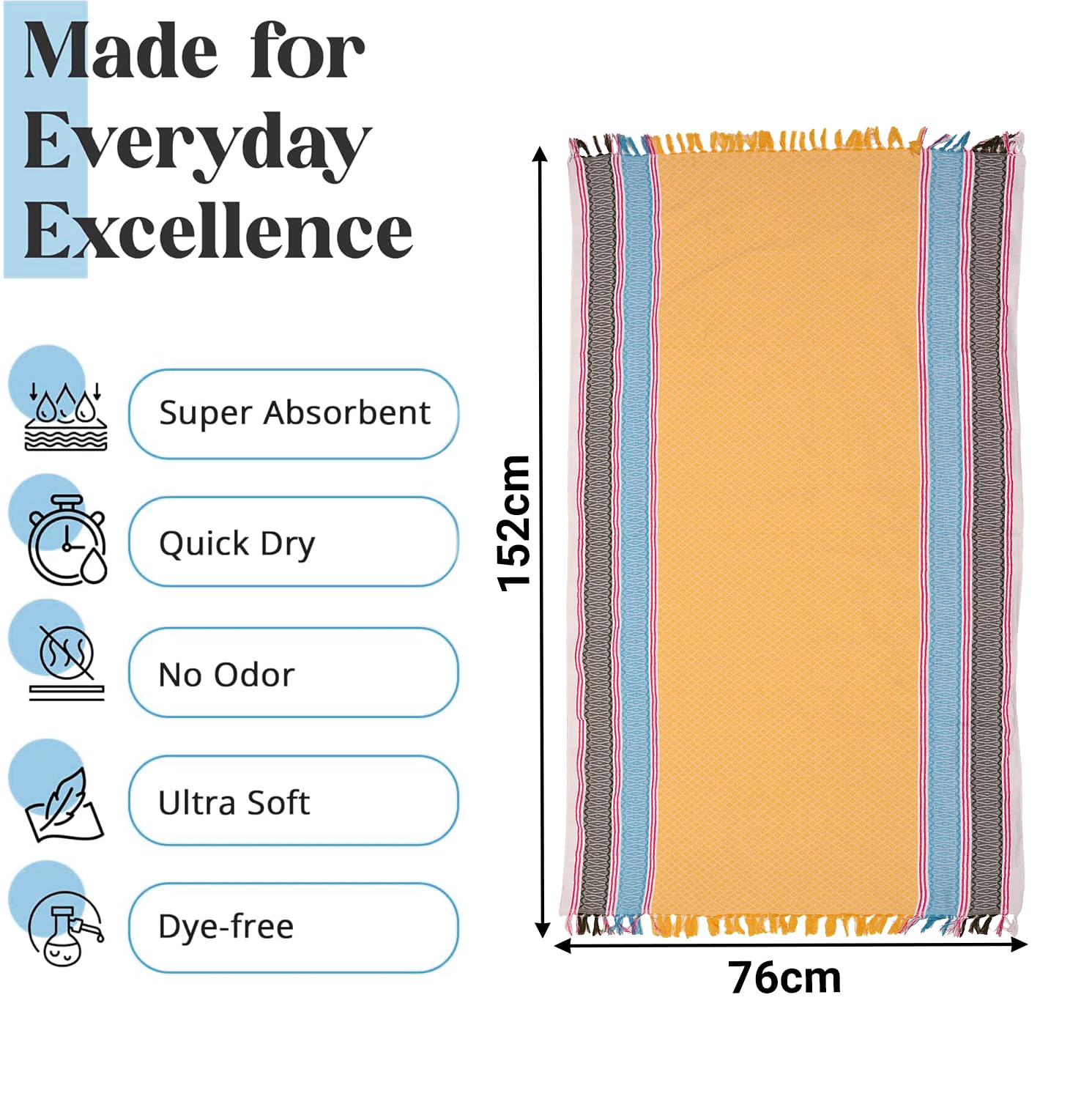 • DURABLE QUALITY: Exceptional fabric ensures the towel remains intact despite regular use.
