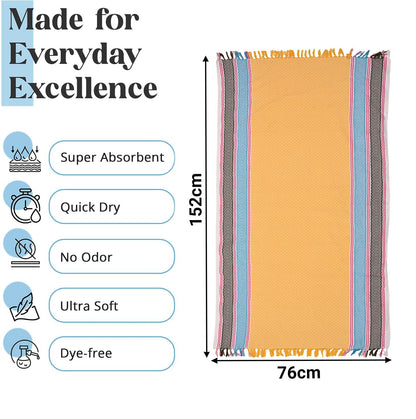 Designed for convenience, our towel is lightweight and easy to pack, making it an ideal companion for trips to the beach, swim practices, or just relaxing at home. The colorful assorted design adds a touch of style, while the durable fabric withstands regular washing and usage. You'll find it perfect for all your needs, whether you're at home or out and about.