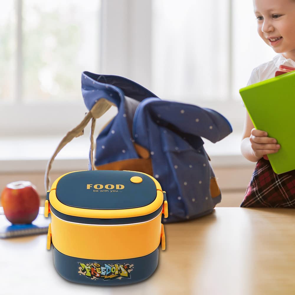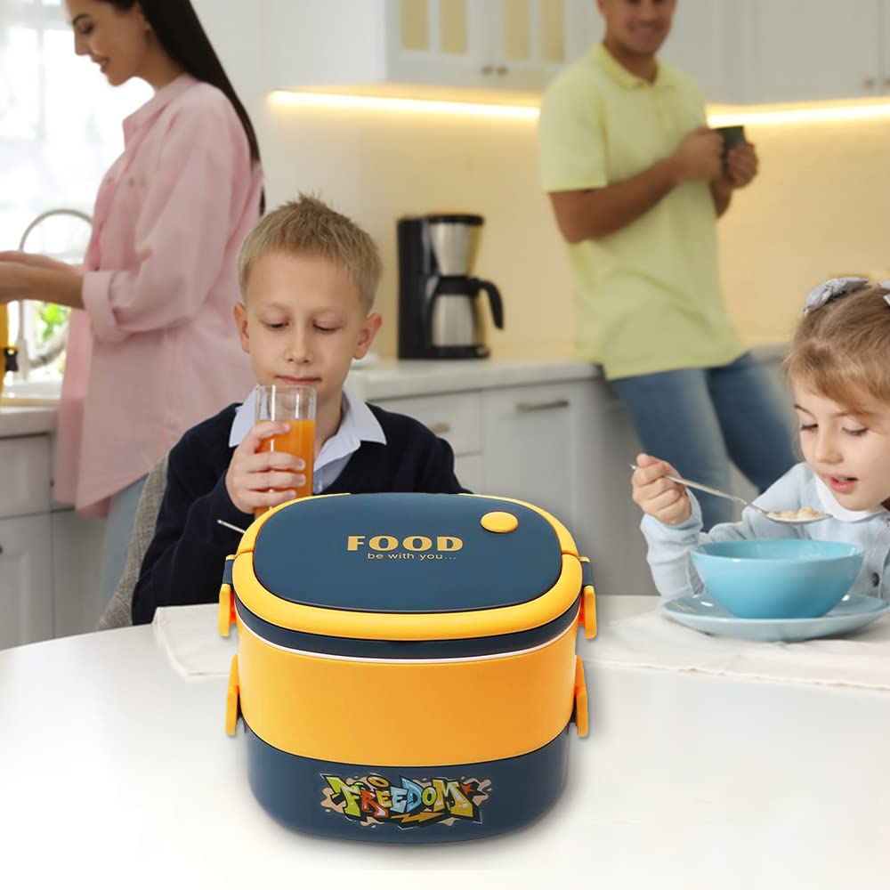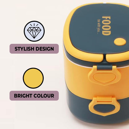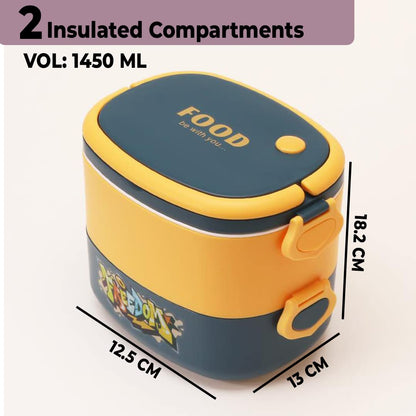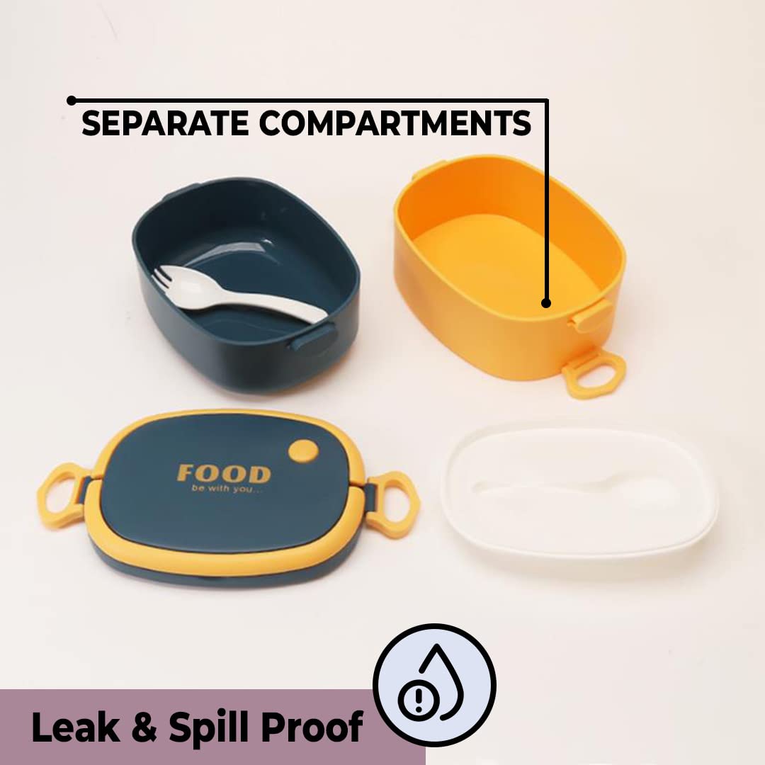 Urbane Home Insulated Lunch Box With 2 Compartments|100% BPA Free, Food Grade ABS Plastic|Leakproof & Spill Proof|Dishwasher & Microwave Safe Lunch Box|1450 ML|HX0043341|Yellow & Blue