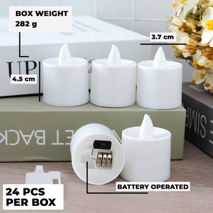 LED Candles for Home Decoration|Battey Operated|Flameless Yellow Light|Safe & Easy to Maintain|Diwali Lights for Home Decoration, Other Festivities & Parties|B0-002,Pack of 24(White)