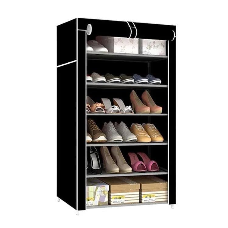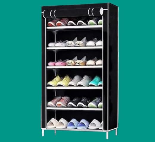 Heart Home Shoe Rack|Non-Woven Fabric 6 Shelves Shelf|Foldable Storage Rack Organizer For Shoe, Books (Black) - Galvanized Tube