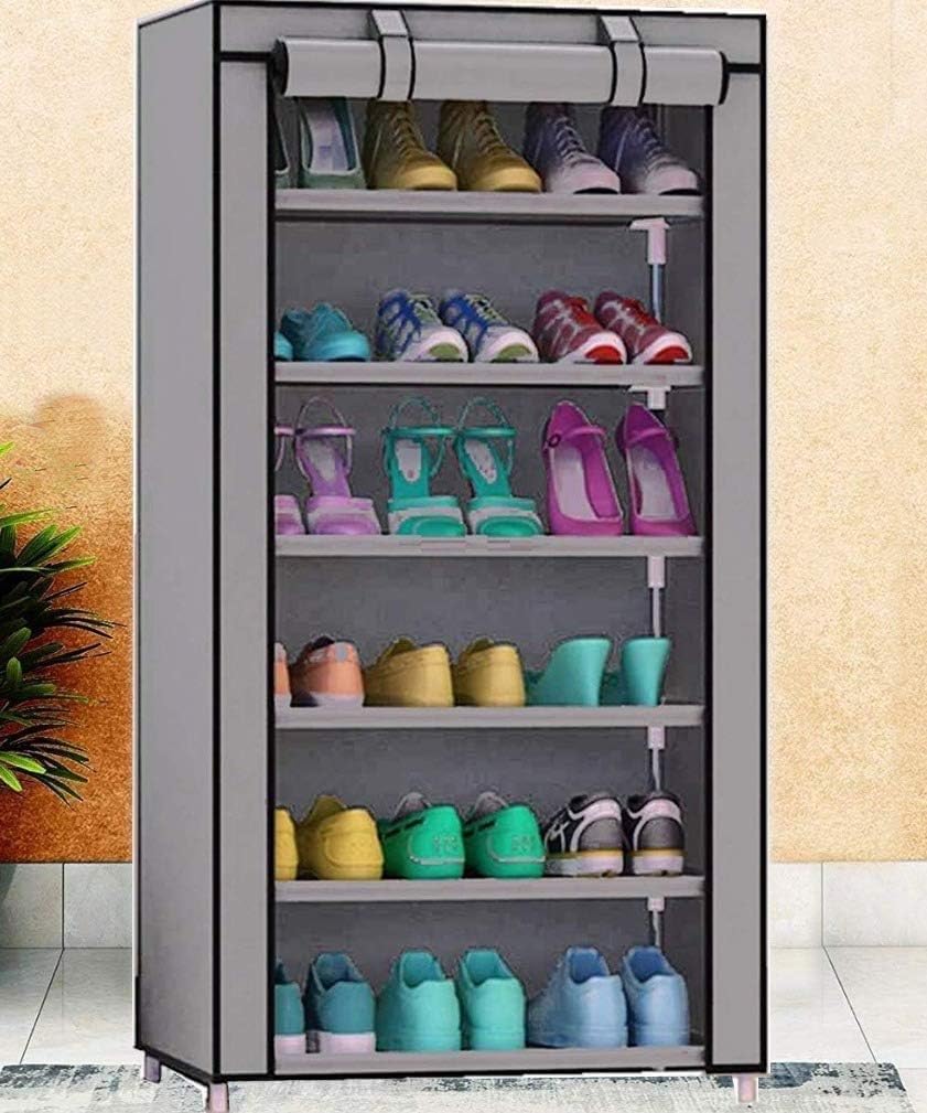 Kuber Industries Shoe Rack|Non-Woven 6 Shelves Shelf|Foldable Storage Rack Organizer for Shoe, Books (Grey)