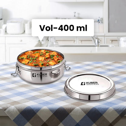 Urbane Home Stainless Steel Food Pack Lunch Box with Steel Separator Plate and Locking Clip, 1 Pc-400 ml Capacity