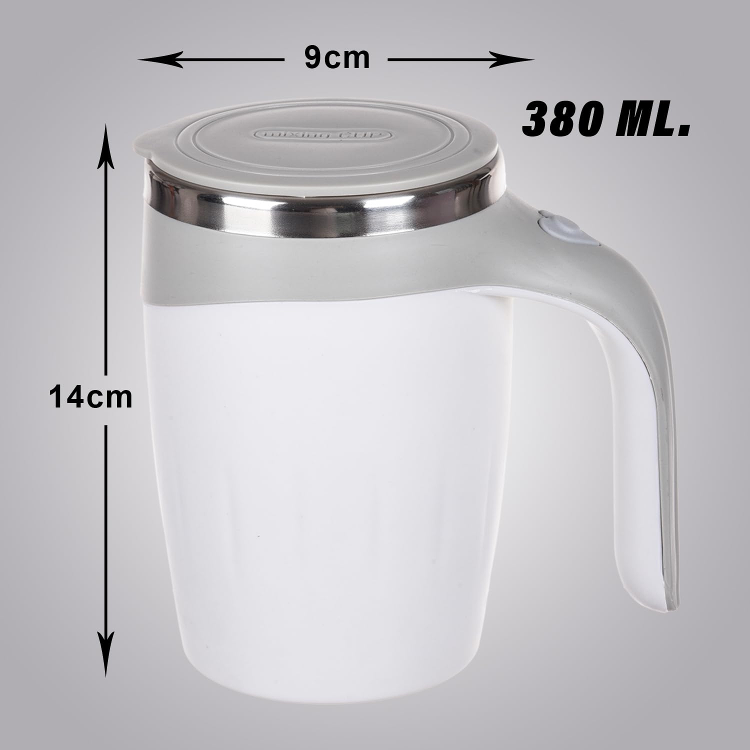 Introducing the Homestic Stirring Coffee Mug, the ultimate companion for coffee enthusiasts by Kuber Industries. This innovative, battery-operated coffee mug is designed to transform your morning routine. With a generous capacity of 380 ML, you can enjoy more of your favorite beverages without constant refills. Crafted from high-quality stainless steel, it ensures durability and a sleek look. Its compact size of 14 cm x 9 cm x 9 cm makes it perfect for both home and travel use.