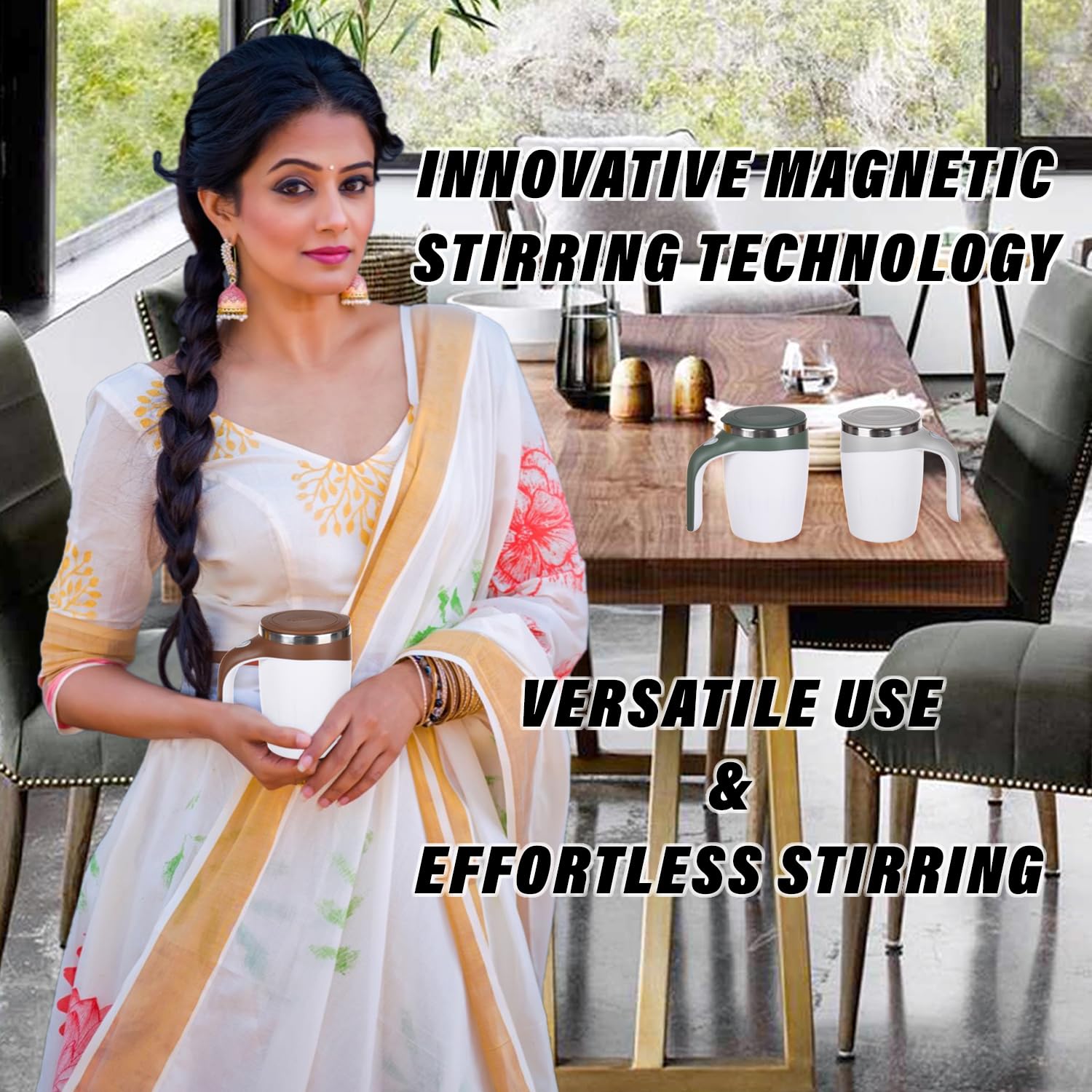 The star feature of this mug is its built-in magnetic stirring mechanism. Just press a button, and watch as it stirs your coffee, tea, or any beverage to perfection—no spoons or stirrers needed!