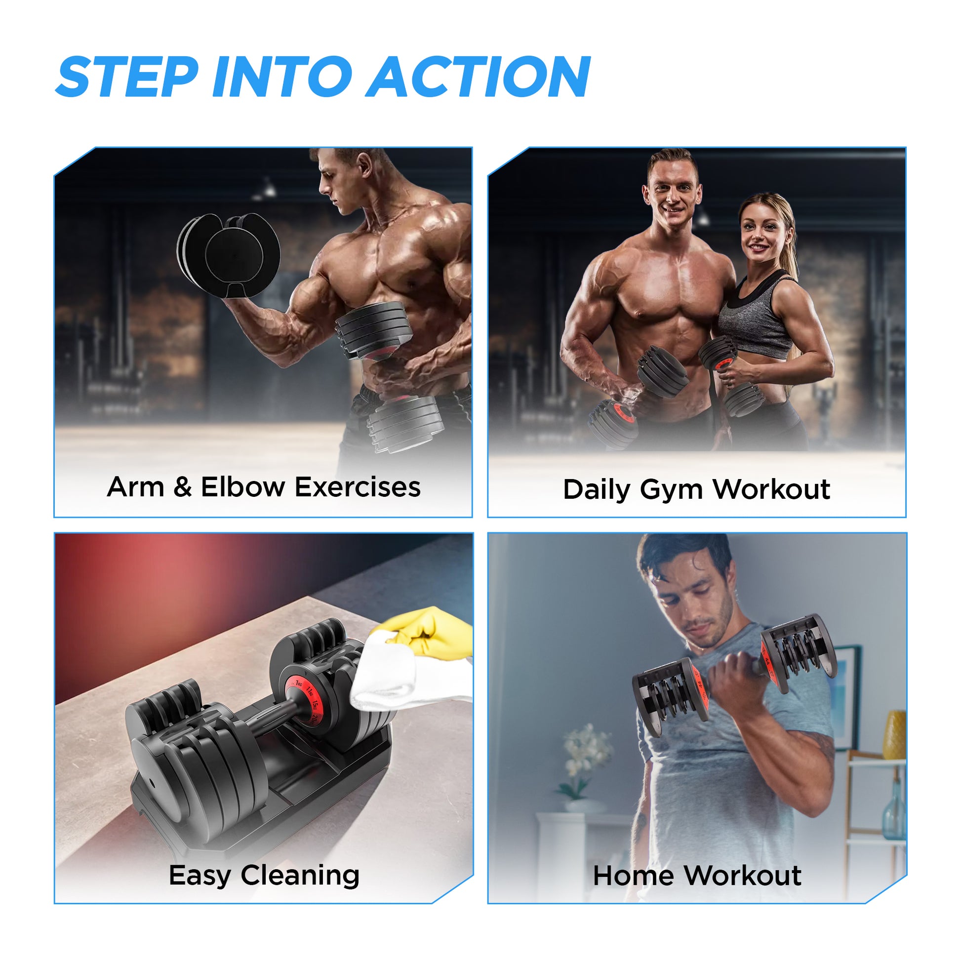 This adjustable dumbbell is perfect for various fitness settings, including: