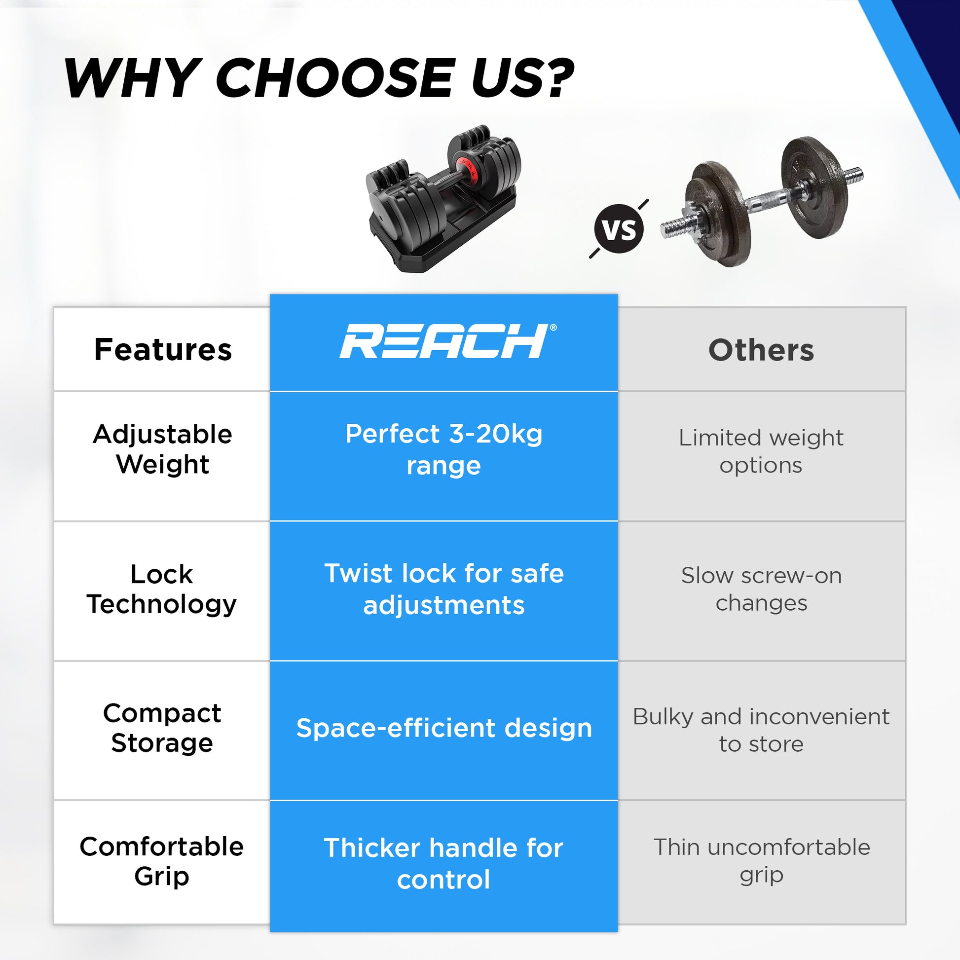 • QUICK WEIGHT ADJUSTMENT: Switch weights rapidly with the smooth twist lock mechanism, making workouts efficient and effective.