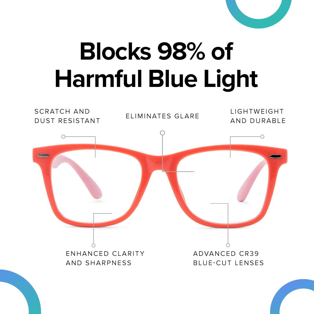 Intellilens Computer Glasses for Eye Protection | Reading Glasses | Blue Light Blocking Glasses Spectacles | Blue Cut Glasses for Kids | UV Protection Glasses for Kids | Zero Power | Wayfarer | Red
