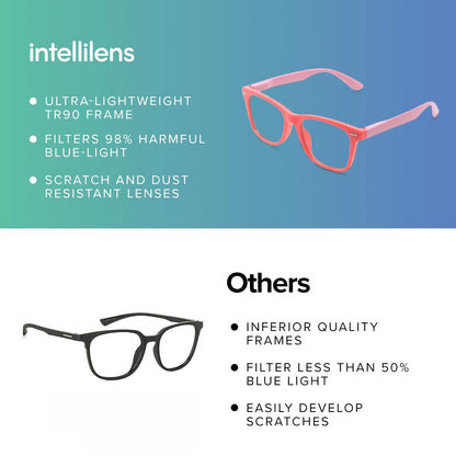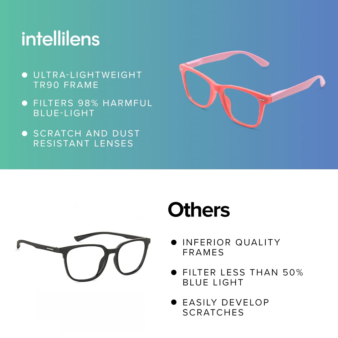 These glasses are perfect for adults and kids looking to protect their eyes while enjoying digital screens. Invest in your eye health today with Intellilens and experience the transformation in your comfort and vision.
