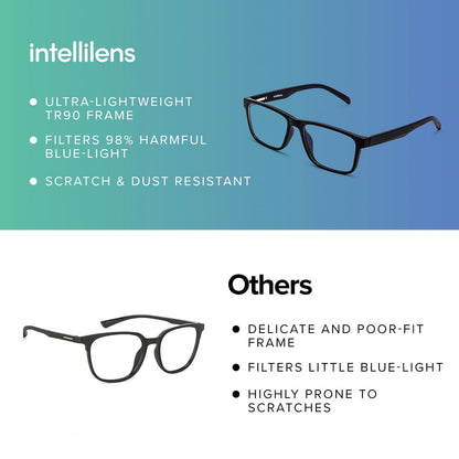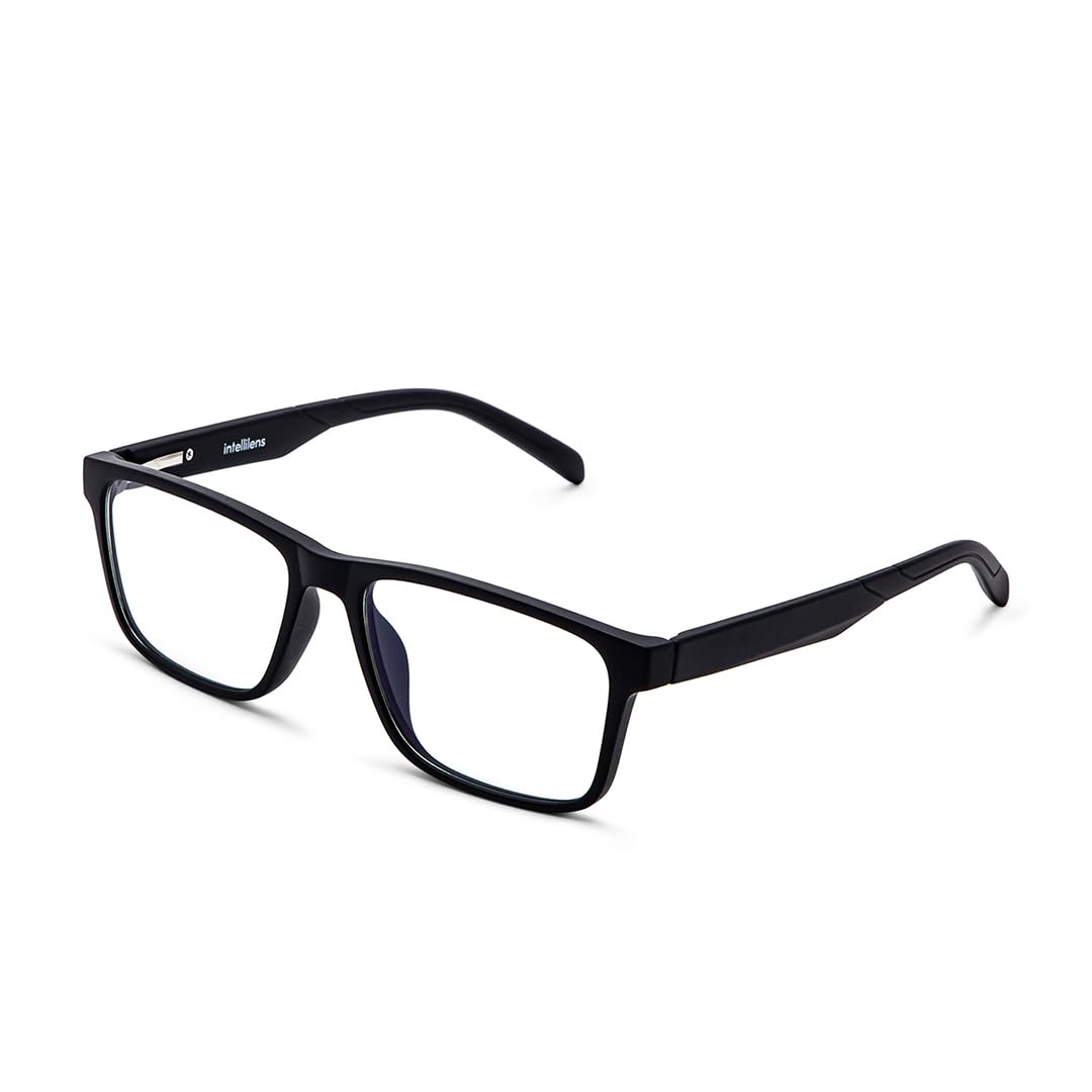 Intellilens | Zero Power Blue Cut Computer Glasses | Anti Glare, Lightweight & Blocks Harmful Rays | UV Protection Specs | For Men & Women | Black | Rectangle | Medium