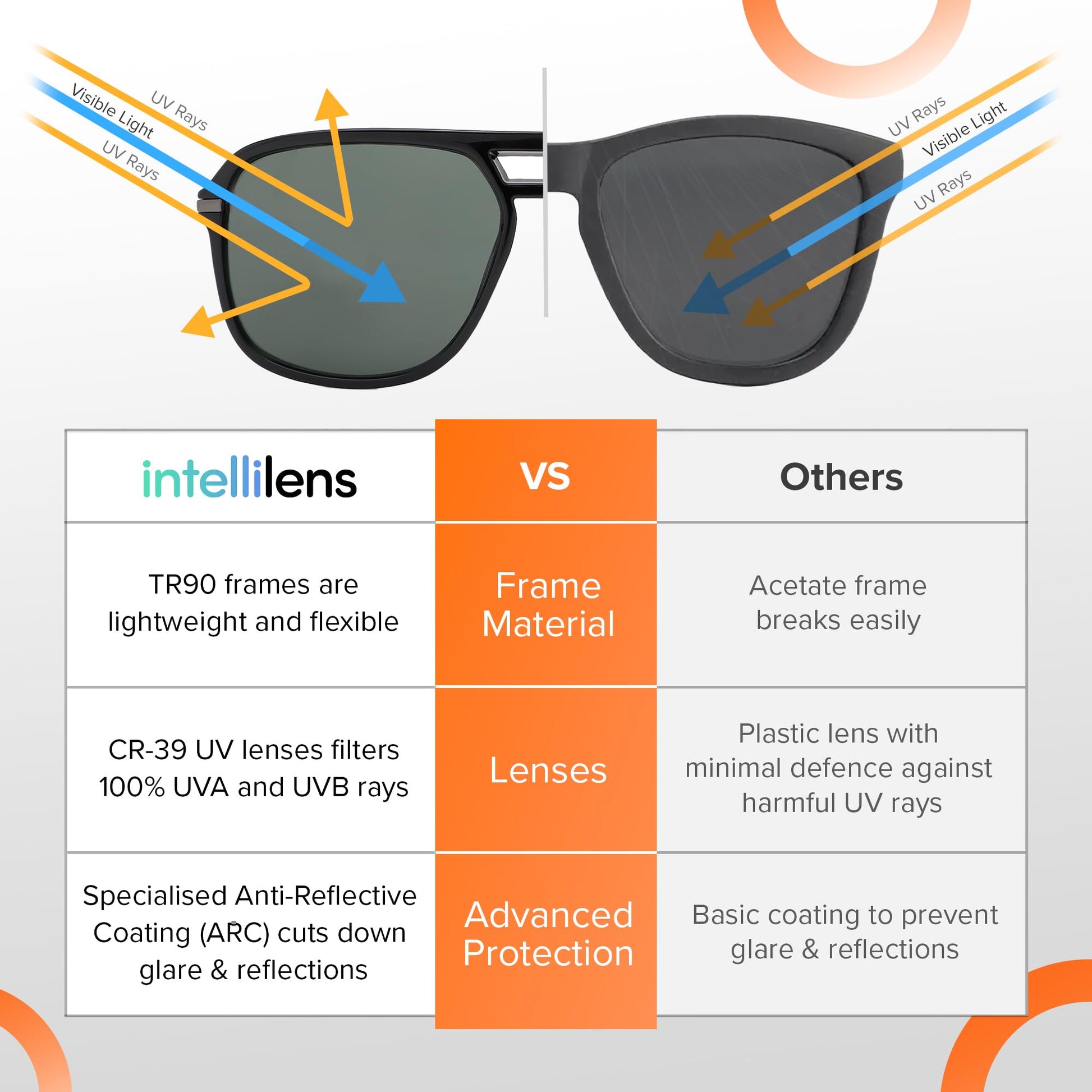 Ideal for anyone seeking stylish and functional eye wear; whether you're an adventurer or prefer casual outings, the Intellilens Men Sunglasses are sure to meet your needs.