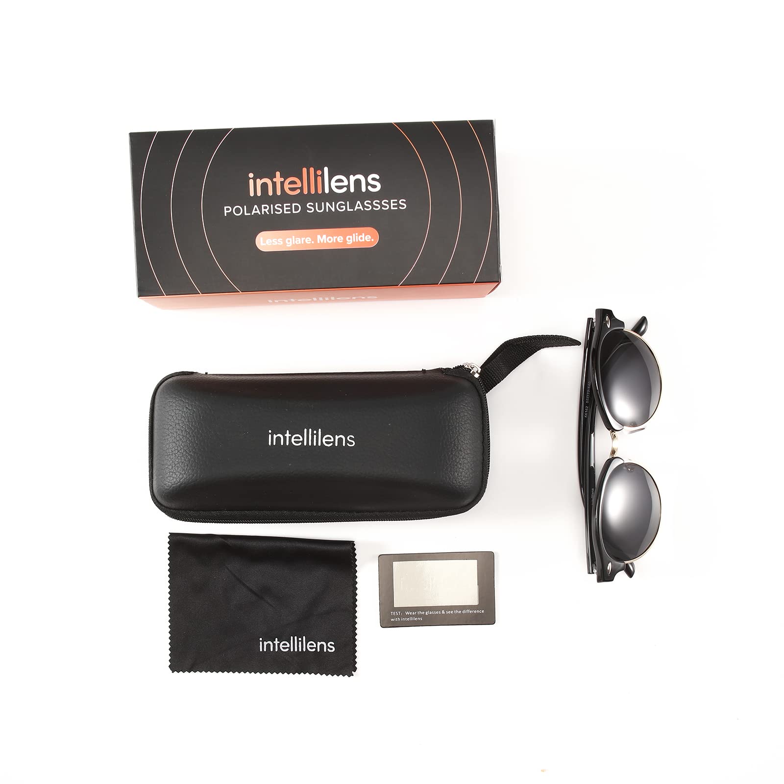 Intellilens | Branded Latest and Stylish Sunglasses | Polarized and 100% UV Protected | Light Weight, Durable, Premium Looks |Women | Black Lenses | Round | Medium