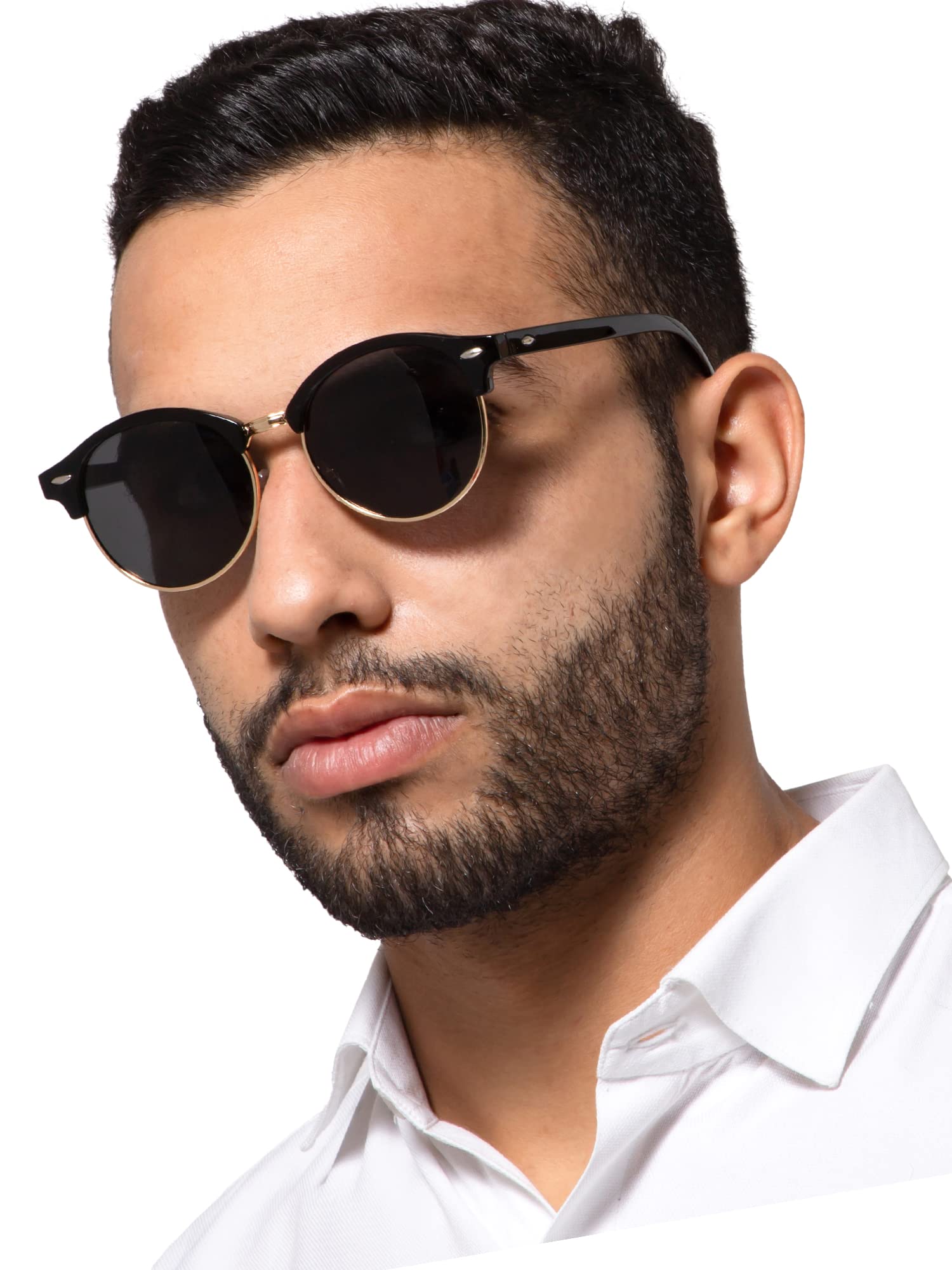 Introducing the Intellilens Men Sunglasses, a perfect blend of functionality and fashion by Intellilens. Designed for both men and women, these stylish round sunglasses are lightweight and crafted from durable TAC material, providing an unmatched wearing experience. The sleek black lenses ensure you look fashionable while offering complete protection against harmful UV rays. The sunglasses are ideal for outdoor activities and casual wear, and they are specifically designed to eliminate glare, making them perfect for bright, sunny days.