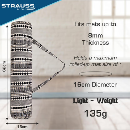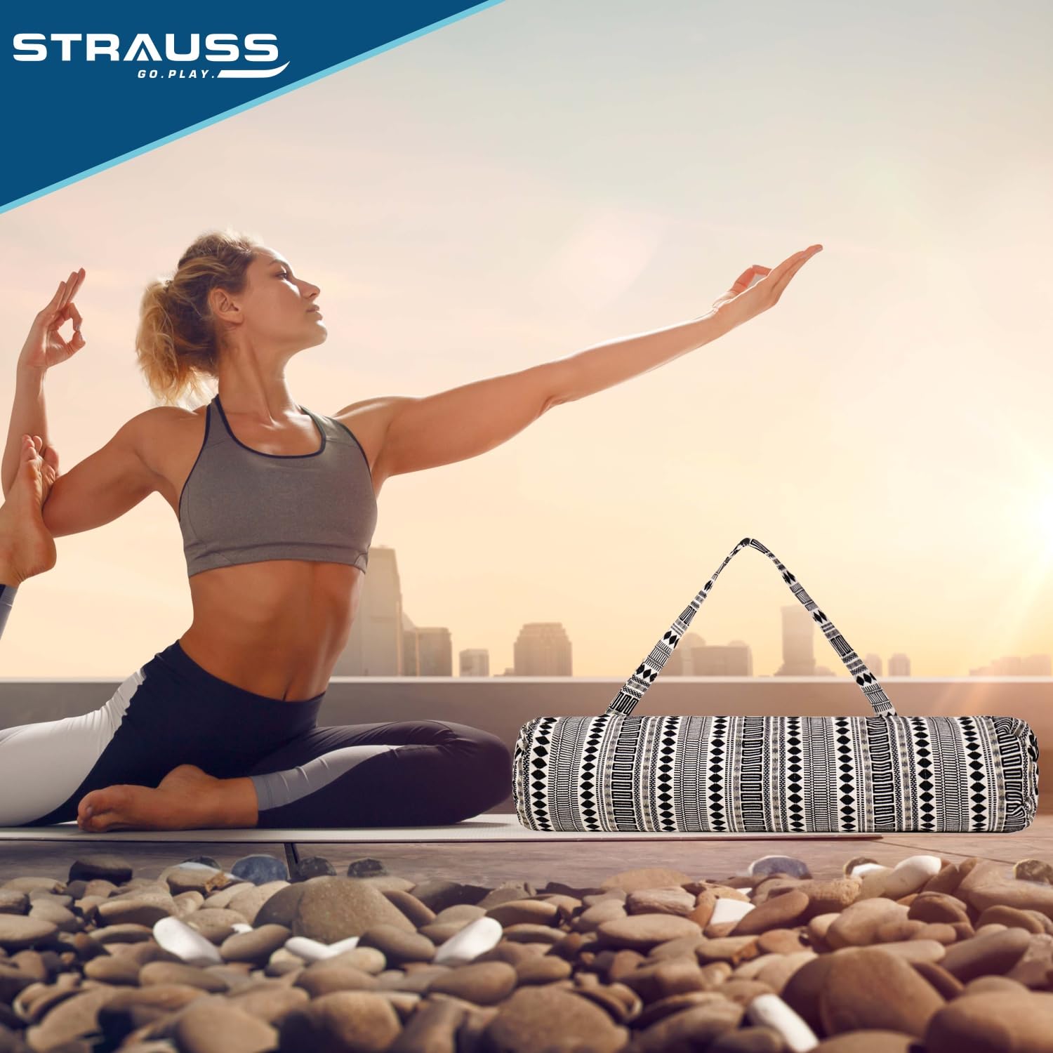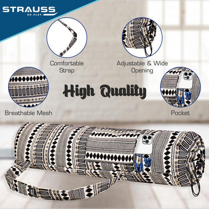 STRAUSS Jacquard Yoga Mat Bag | for Both Men and Women |Breathable, Durable and Long- Lasting| Suitable for Yoga Mat, Travel and Gym | Eco- Friendly and Washable |(Black Pattern)