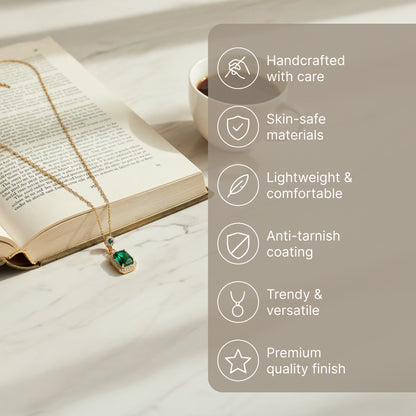 • FASHIONABLE DESIGN: This jewellery set showcases an elegant gold plated pendant with emerald green cubic zirconia stones, adding a modern and luxurious touch.