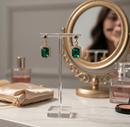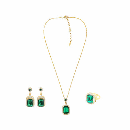 Jewellery Set: Women’s Gold Plated Emerald Green Pendant with Earrings | Modern Design