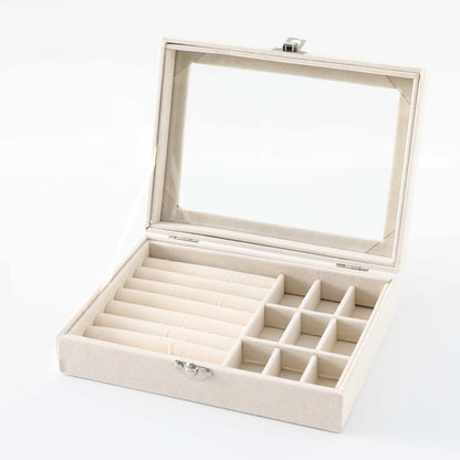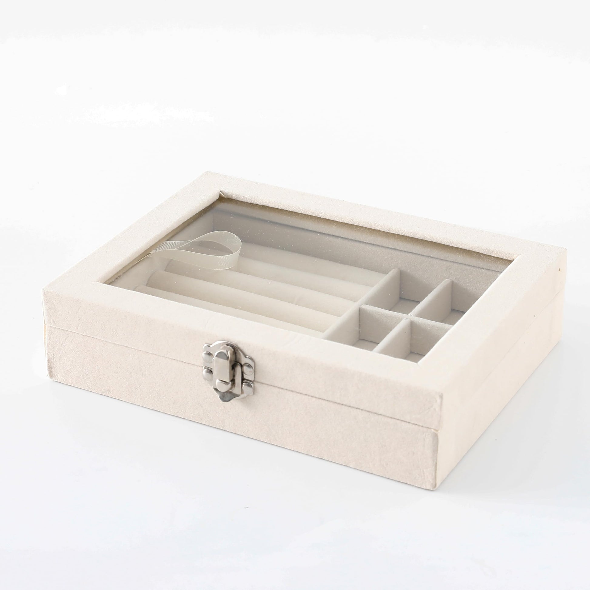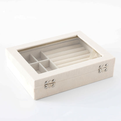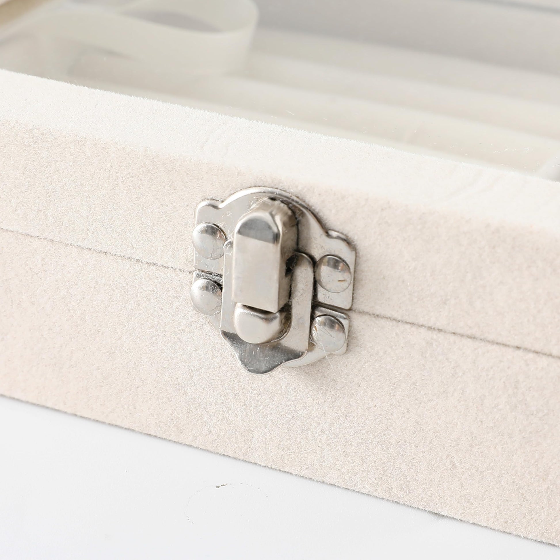 Jewelry Box Organizer | Velvet & MDF | Lockable | 20 x 15 x 5 cm | White