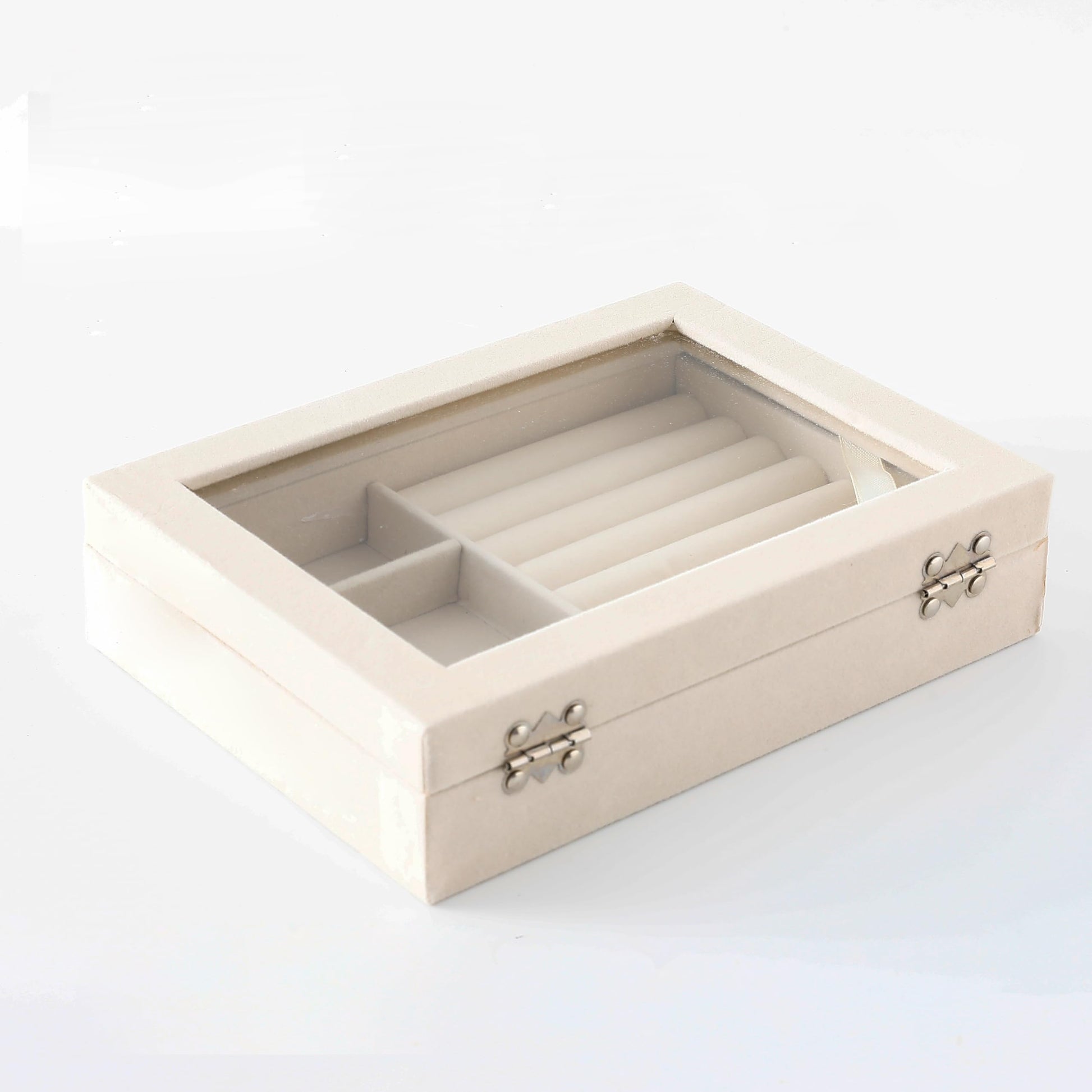 Homestic Pack of 1 Velvet Jewelry Box Organizer | Jewelry Storage Box | Jewelry Organizer | Showcase Holder Dresser Organizer for Earring Necklace Bracelet Ring | YXX-018 | White