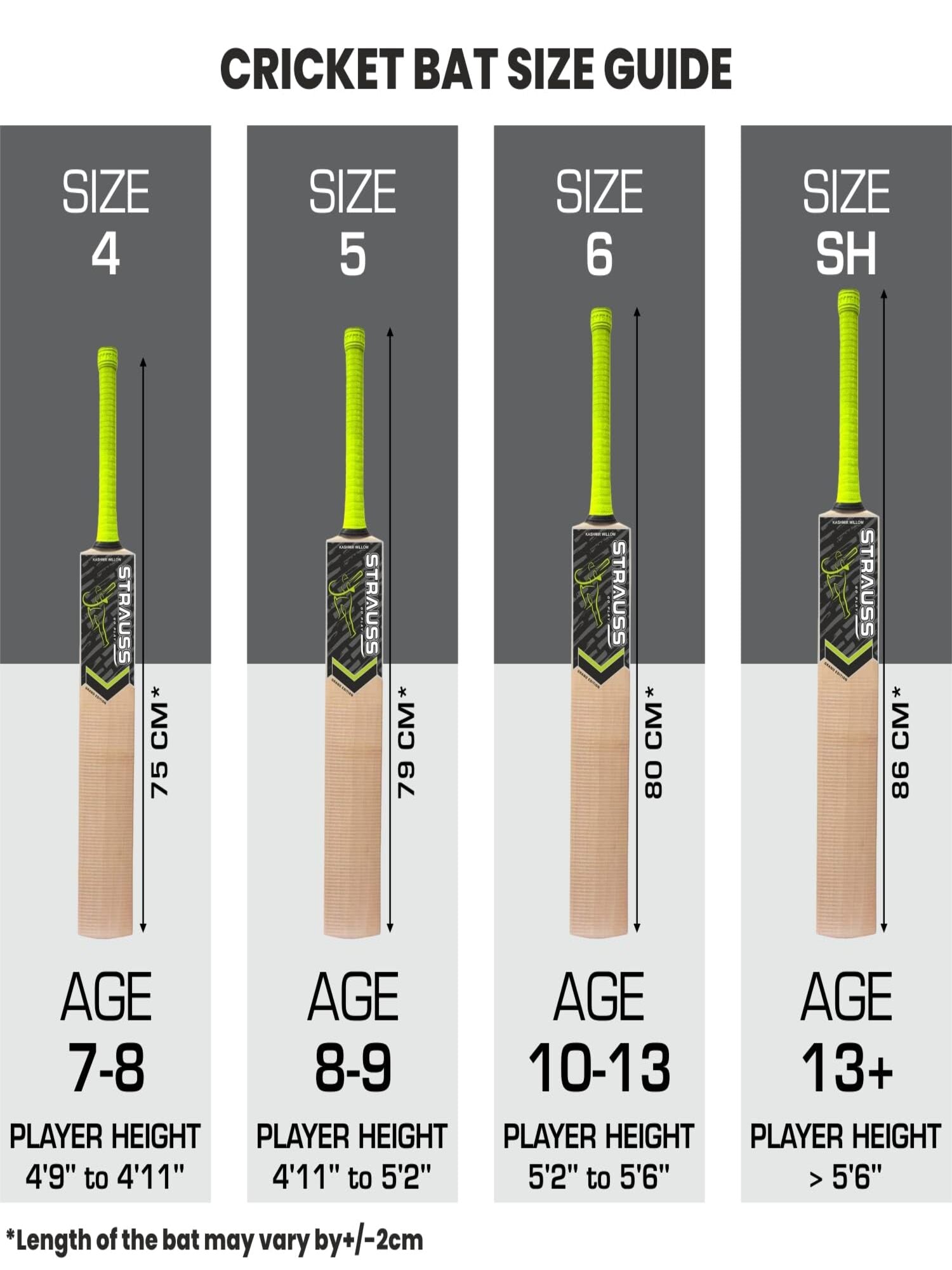 Introducing the Kashmir Willow Cricket Bat by Strauss Sports, crafted for young cricket enthusiasts aged 12-14. This lightweight bat weighs just 764 grams and measures 73 cm in length (Size 5), ensuring a perfect balance between comfort and performance. The bat features a robust anti-scuff sheet for durability and comes with a protective cover, allowing for easy maintenance whether you’re in training or a friendly match.