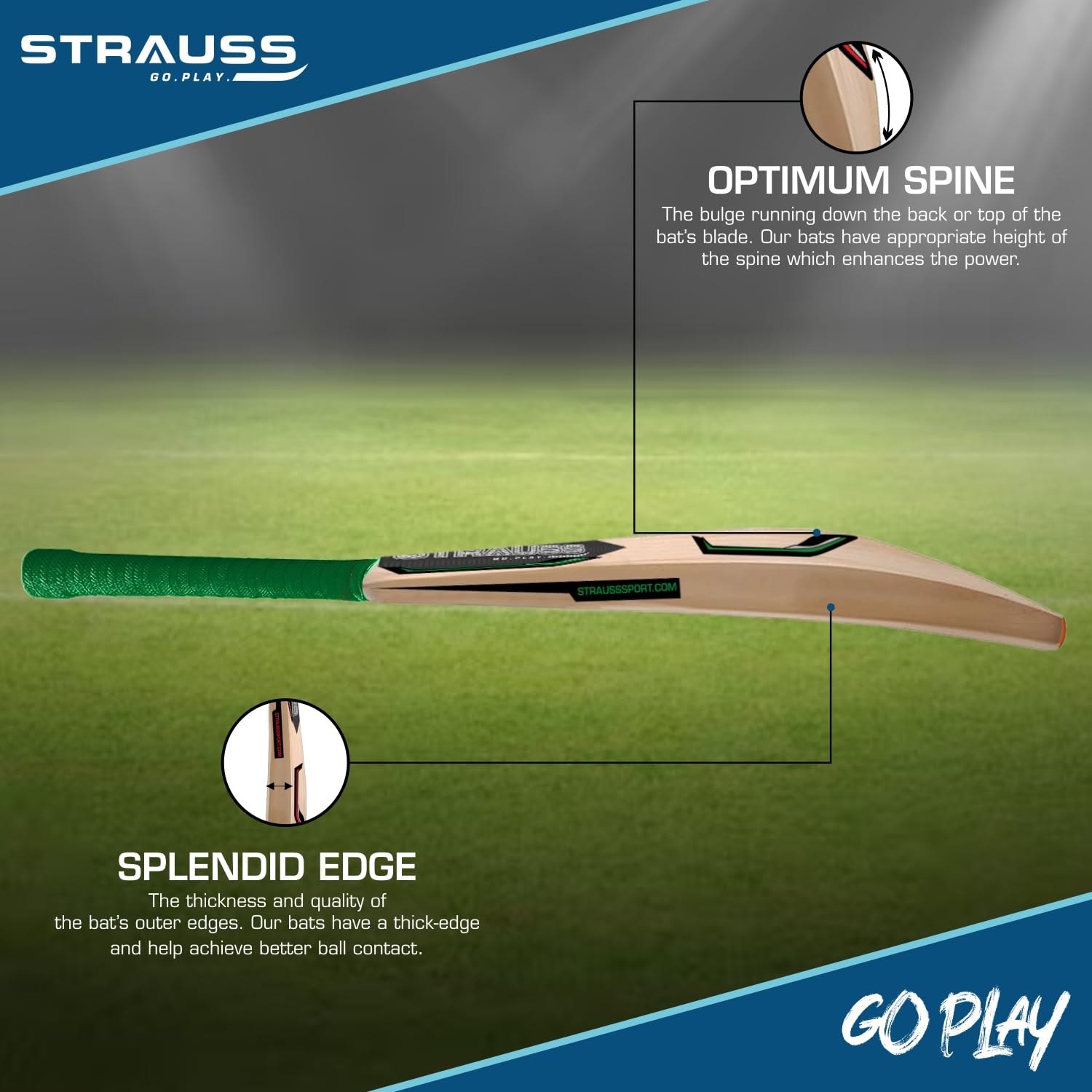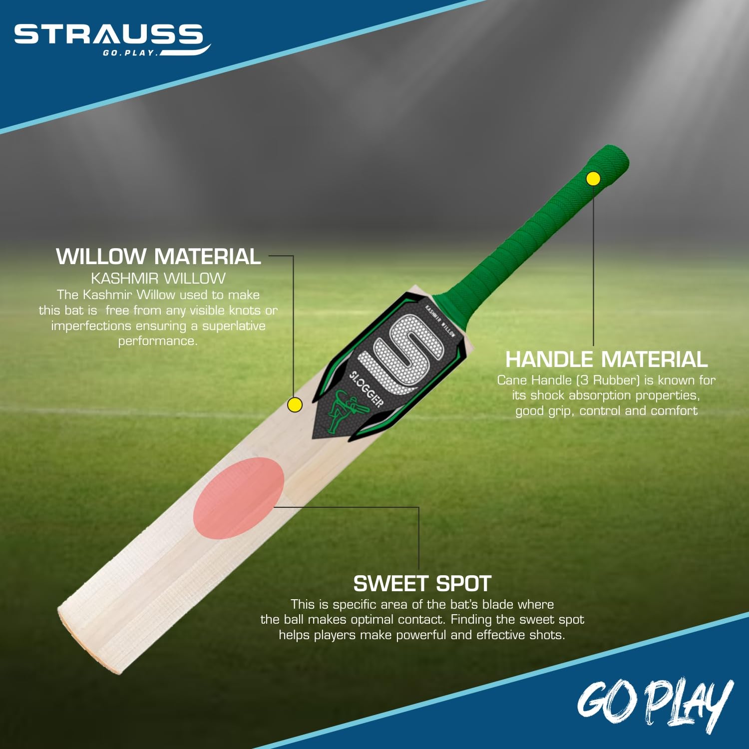 Strauss Slogger Cricket Bat | Kashmir Willow | Cricket Bat with Grip for Gully Cricket & Tournament Match | Standard Tennis Ball Bat for Cricket | Size: 4 (700-800 Grams)