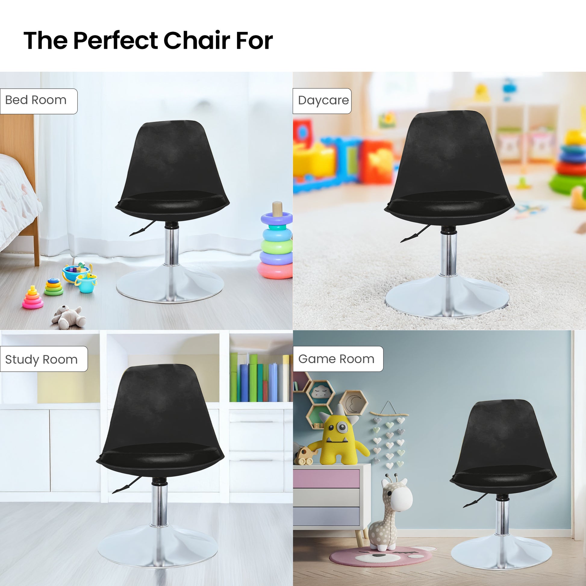 Carbon Steel Kids Kiddle Desk Chair| Revolving | High Chair | Height Adjustment | Cushioned | Study | Kids(Ergonomic Chair, Qty-1, Black)