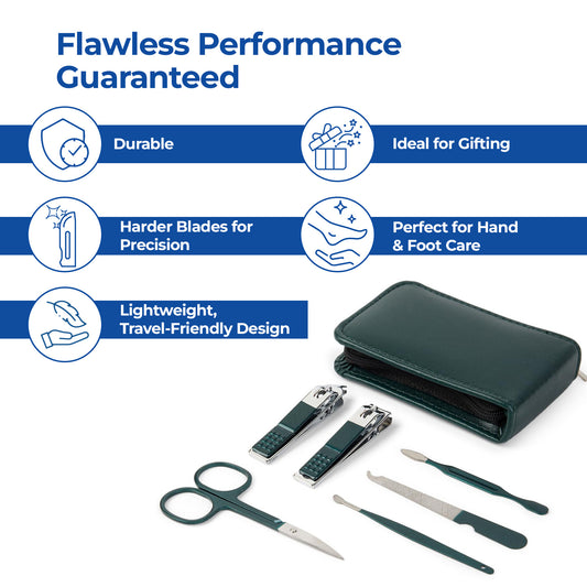 6 in 1: Pedicure & Manicure Kit - Professional Quality Tools | Travel-friendly Case | Bottle Green
