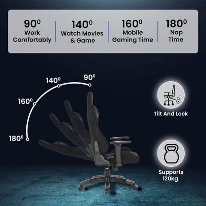 Diablo Gaming Chair - Ergonomic, 180° Recline | Adjustable Neck Pillow & Lumbar Support | Blue (Black)
