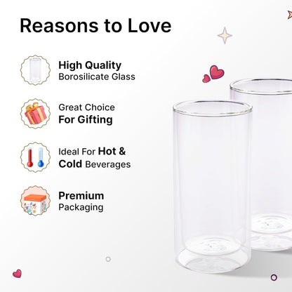 Introducing the 6 Pcs Double Walled Borosilicate Glasses by Kuber Industries, your perfect companion for enjoying beverages in style. Each glass has a capacity of 250 ml and is made from high-quality borosilicate glass, ensuring durability and thermal resistance. This set of six gives you ample versatility for any occasion.