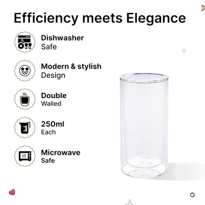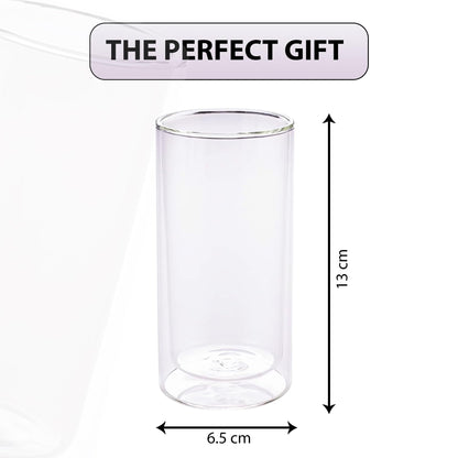 6 Pcs Double Walled Glasses | Borosilicate Glass Tumblers for Water | High Heet Resistance | Microwave & Dishwasher Safe | Juice Glasse | 250 ML | Pack of 3 | Transparent