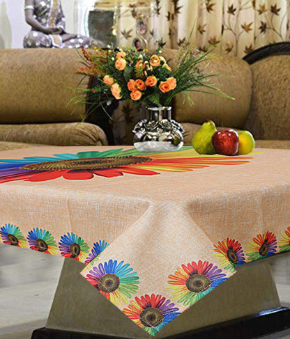Kuber Industries Center Table Cover - Jute, Waterproof | Sun Flower Design | Gold | 4 Seater