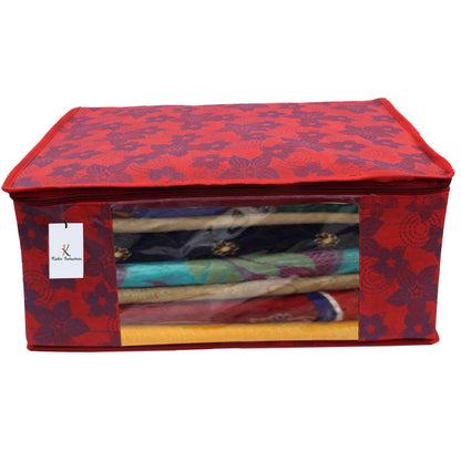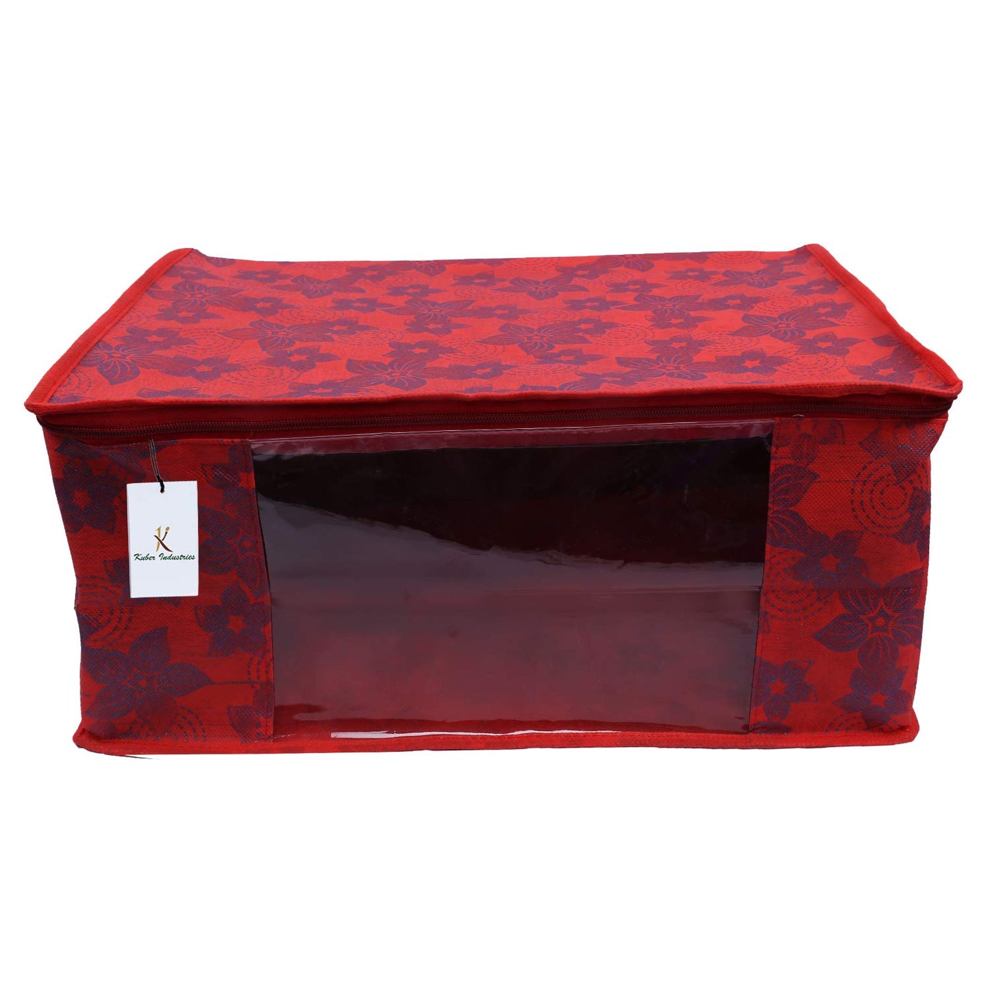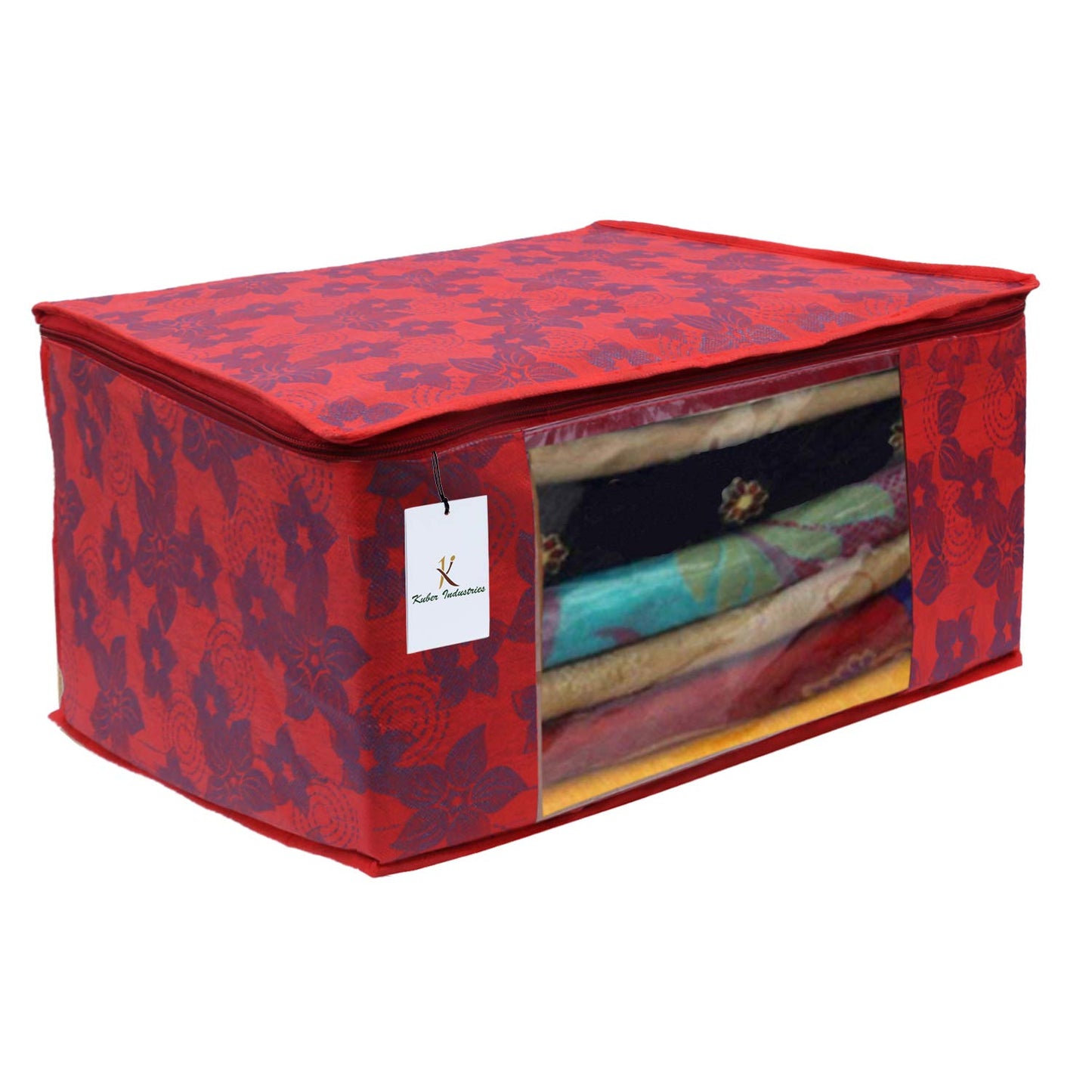 Clothes Organizer For Wardrobe (Pack of 3) - Storage Organizer For Saree | Shirts | Lehanga | Clothes - Dress Organizer For Wardrobe - Saree Covers With Zip (Printed) (Red)