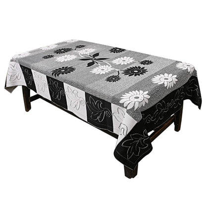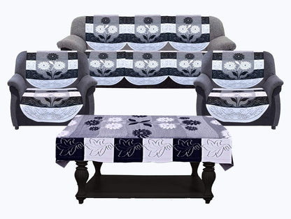 Kuber Industries Cotton 5 Seater Sofa Cover with Center Table Cover|Premium Cotton Fabric & Side Flower Design|Cutting Edge Round Shape, 7 Piece (Black and White)