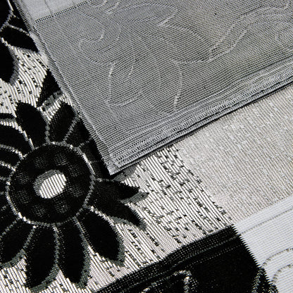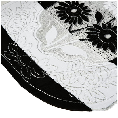 Cotton 5 Seater Sofa Cover with Center Table Cover|Premium Cotton Fabric & Side Flower Design|Cutting Edge Round Shape, 7 Piece (Black and White)