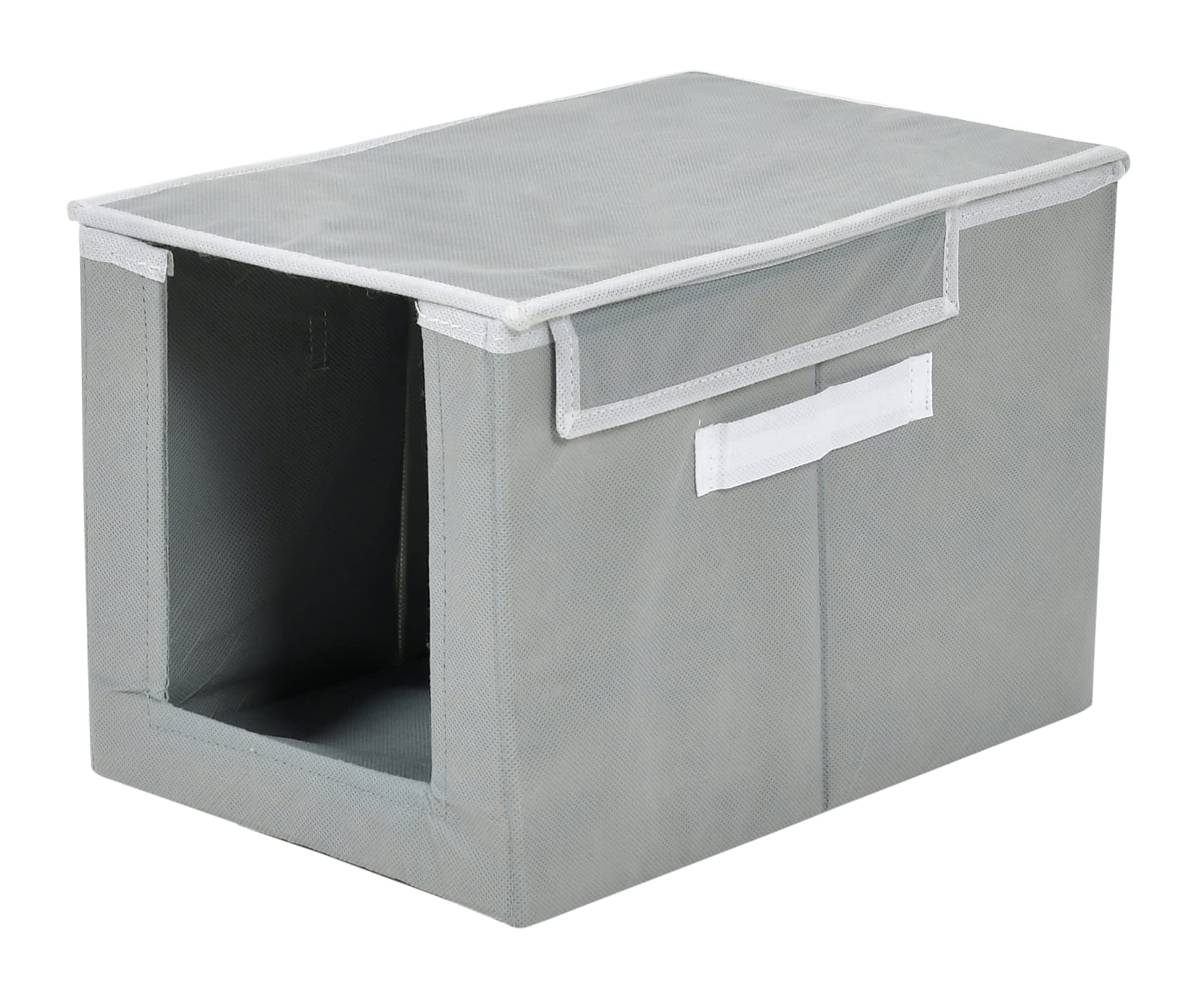 cotton Foldable Shirt Stacker With Carrying Handle & Lid |Cloth Wardrobe Organizer|Size 38 x 26 x 24 CM (Grey, Rectangular)