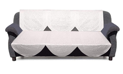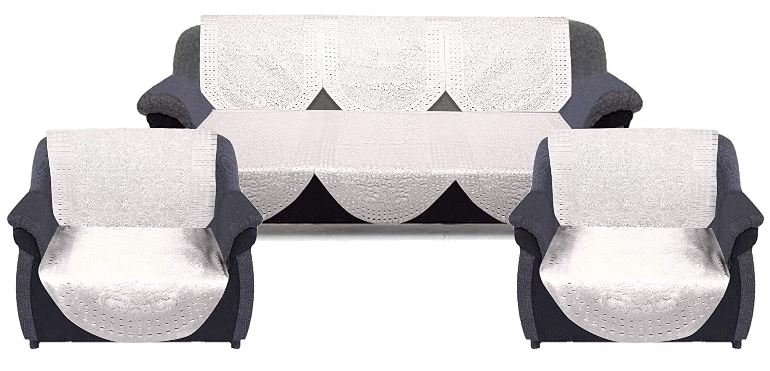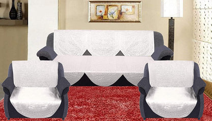 Cotton Polka Dots Design Shining 5 Seater Sofa Cover Set (CTKTC33700, White, Standard) - 6 Pieces