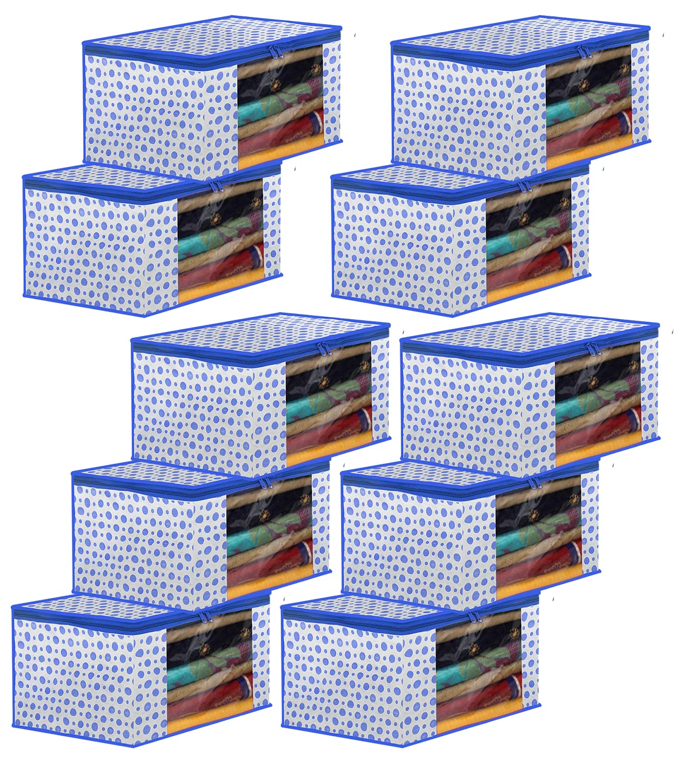 Cotton Saree Covers With Zip|Saree Covers For Storage|Saree Packing Covers For Wedding|Pack Of 10 (Blue)