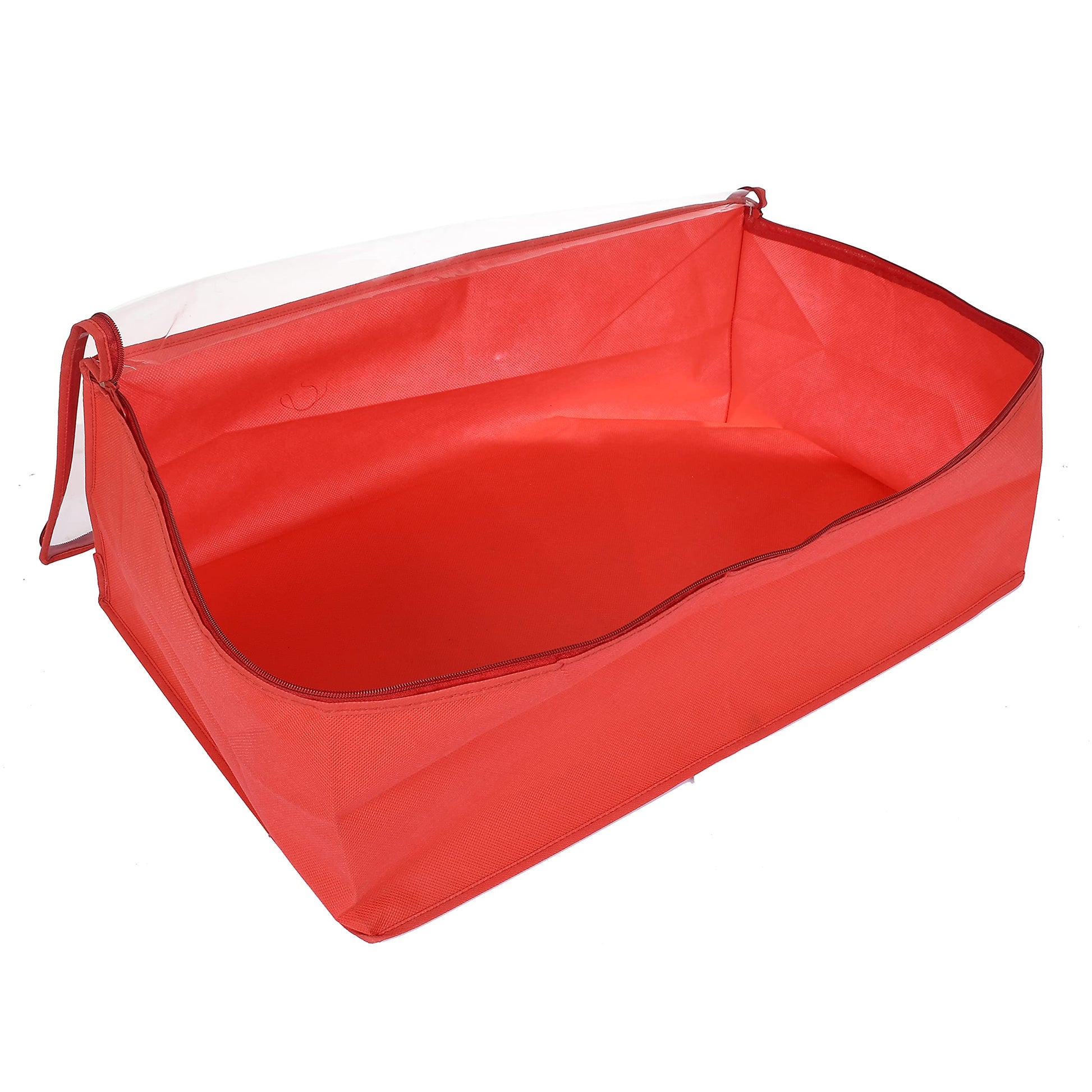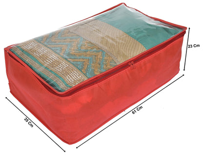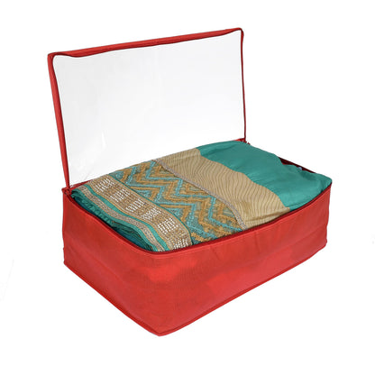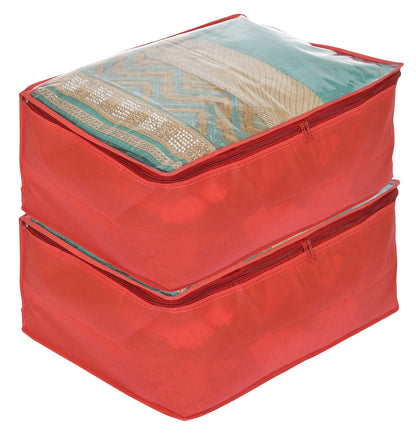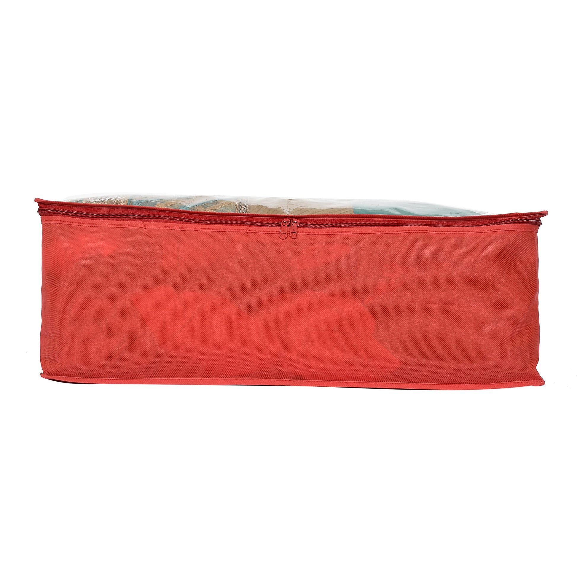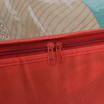 Cotton Transparent Underbed Storage Cover/Lehenga Cover/Saree Cover/Gown Cover/Salwar Suit Cover For Women-Pack Of 2 (Red)