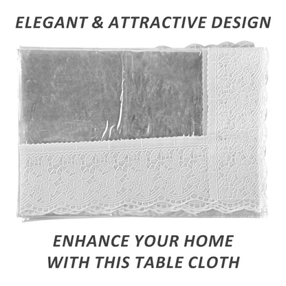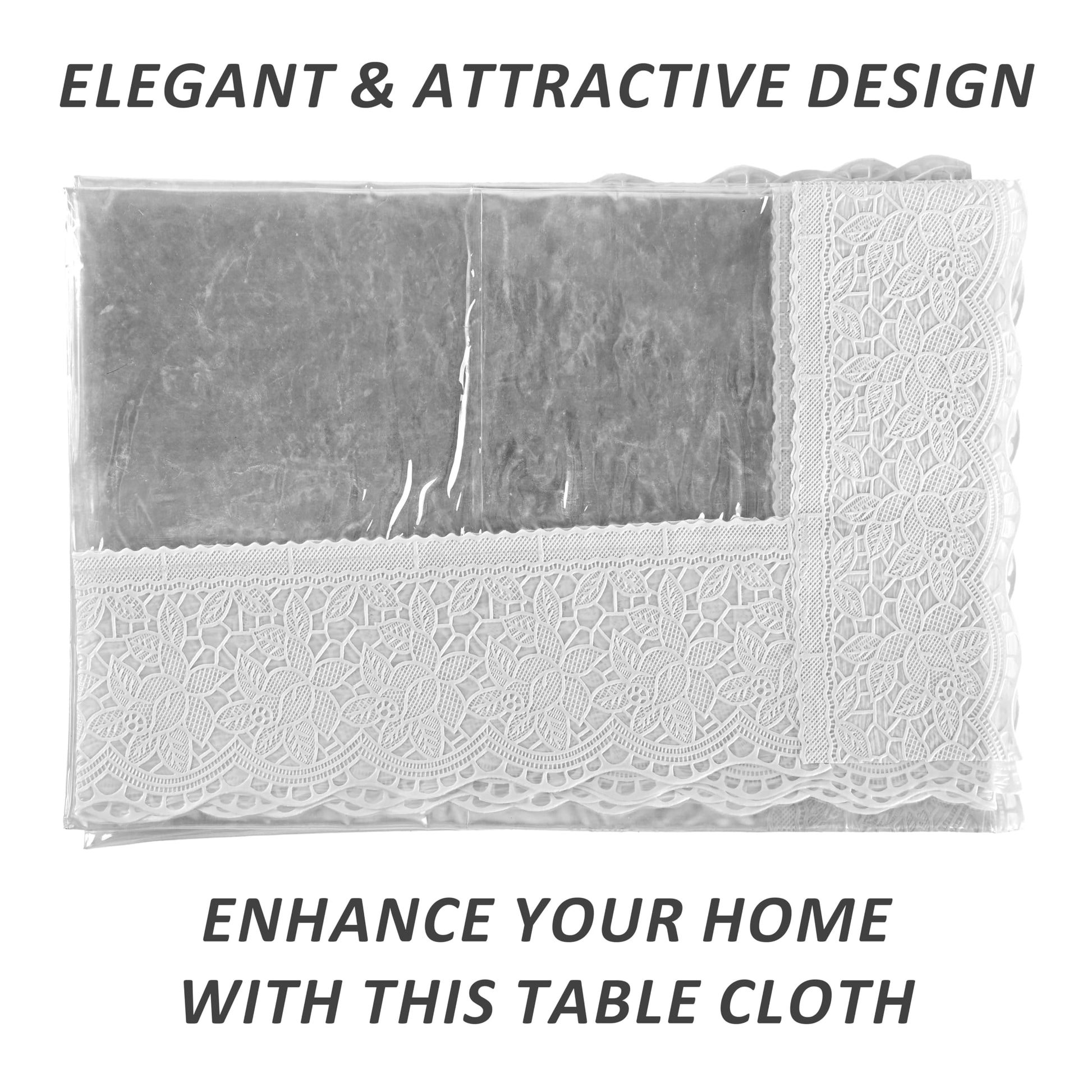 Waterproof Dining Table Cover - 6 Seater, 90x60 Inch | 1 Piece | PVC Material | White Lace Design
