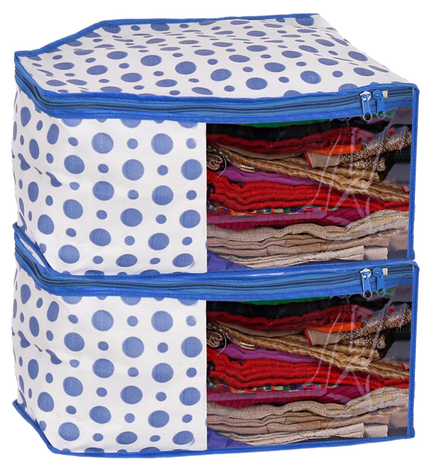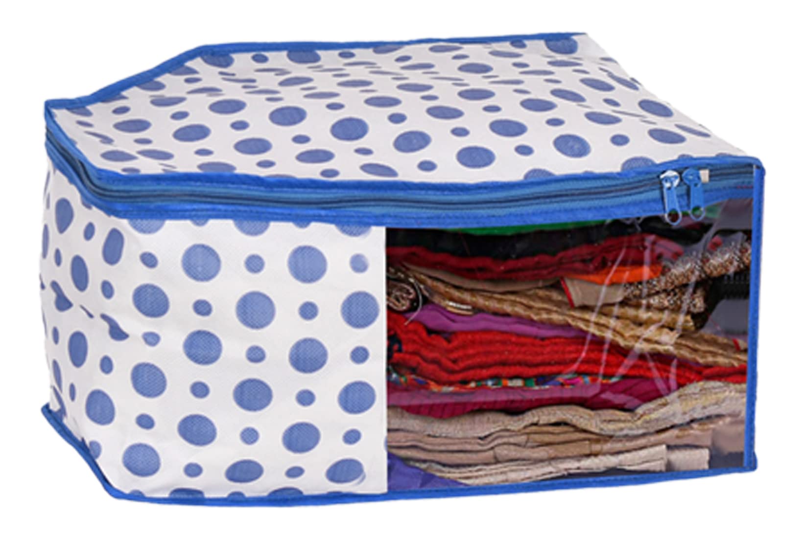 Kuber Industries Dot Printed Non-Woven Blouse Cover, Cloth Organizer, Wardrobe Organiser With Tranasparent Window- Pack of 2 (Blue)-46KM0304 Package Contents: 2 Piece Blouse Cover Material: Non-Woven Dimension: 39cm x 27cm x 18cm Perfect Organizer: This is a great organizing companion for your clothes in the wardrobe that keeps your clothes well maintained in one place. It also saves your efforts for finding Blouse at the right time. Keeping your favourite blouses at one place is made much easier with this cover, as its great volumnosityavails space for around 5-6 blouses each. You can keep this blouse cover in your wardrobe or carry on a travel to keep your blouse in proper fold and wrinkle-free . This blouse cover are LightWeight and Portable, easily Move to Shelves, Closets, Wardrobe etc—Quickly Pack/Unpack between Seasons, Traveling, Moving, or as Needed. Fold Away or Collapse Flat Under Bed or in Drawers When Not in Use