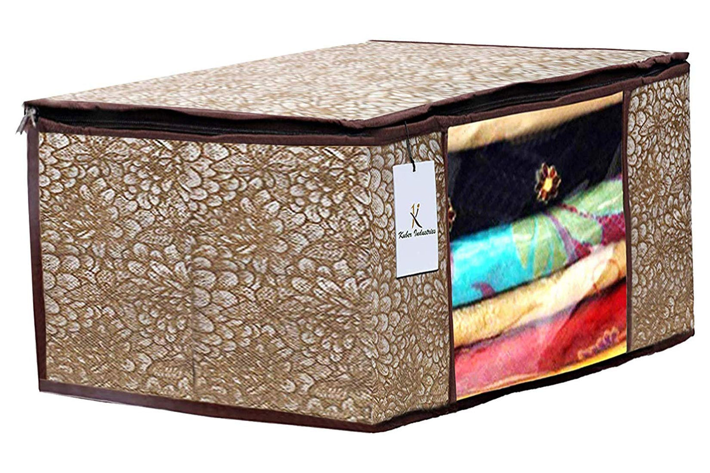 Kuber Industries Flower Design 3 Piece Non Woven Saree Cover, Large, Golden Brown - CTKTC15239