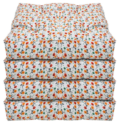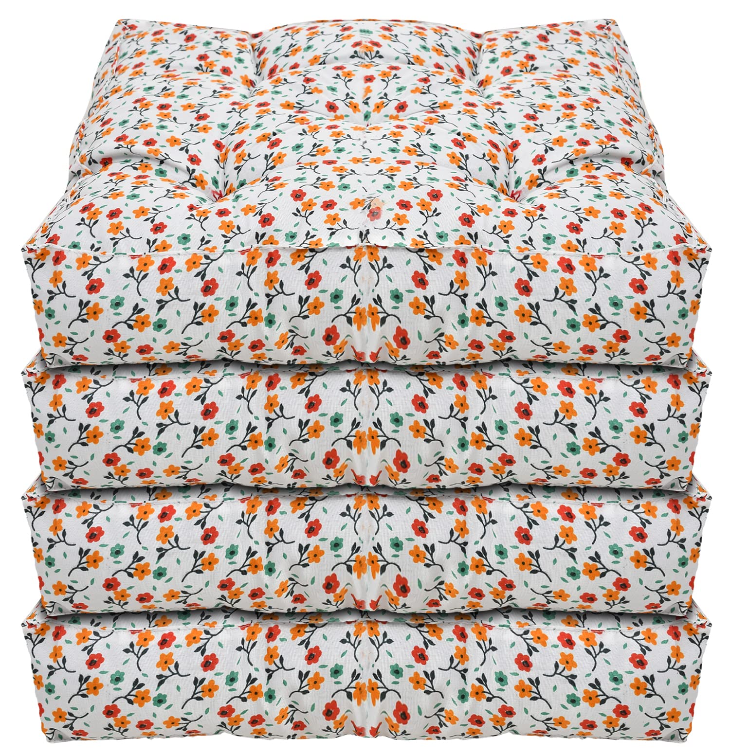 Kuber Industries Flower Printed Microfiber Square Chair Pad Seat Cushion for Rocking Chair, Office Chair, Dinning Chair, Indoor/Outdoor, 18 * 18 Inch- Pack of 4 (White), Standard