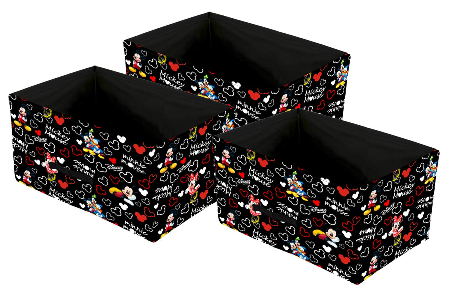 Kuber Industries Foldable Boxes For Storage (Pack of 3) - Multipurpose Storage Organizer For Clothes | Wardrobe | Closet | Toys | Books - Disney Mickey Print - Undergarment Organizer Basket (Black)