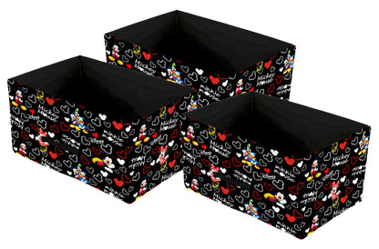 Foldable Boxes For Storage (Pack of 3) - Multipurpose Storage Organizer For Clothes | Wardrobe | Closet | Toys | Books - Disney Mickey Print - Undergarment Organizer Basket (Black)