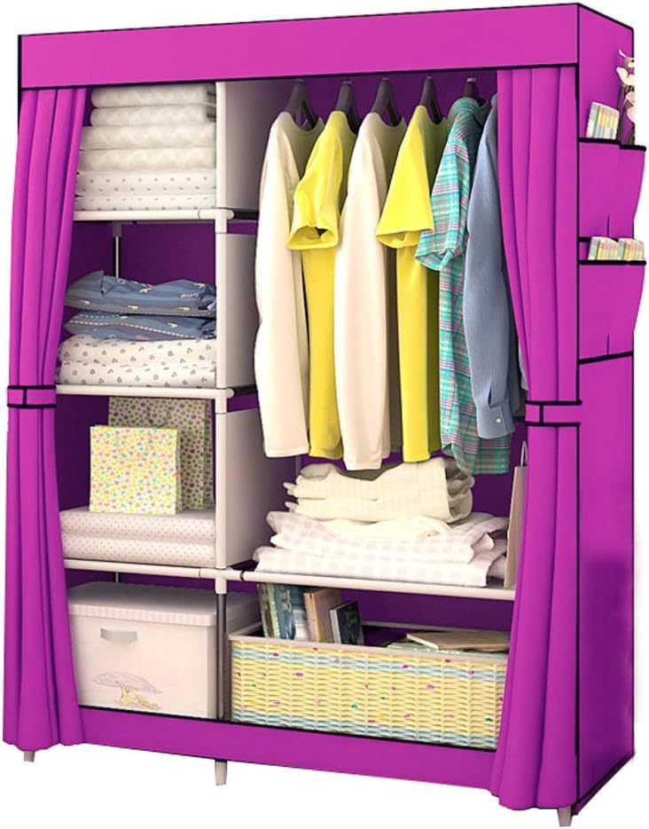 Urbane Home Foldable Wardrobe for Clothes|Non Woven 2 Door Portable Clothes Rack|6 Shelves Almirah for Clothes (Purple)