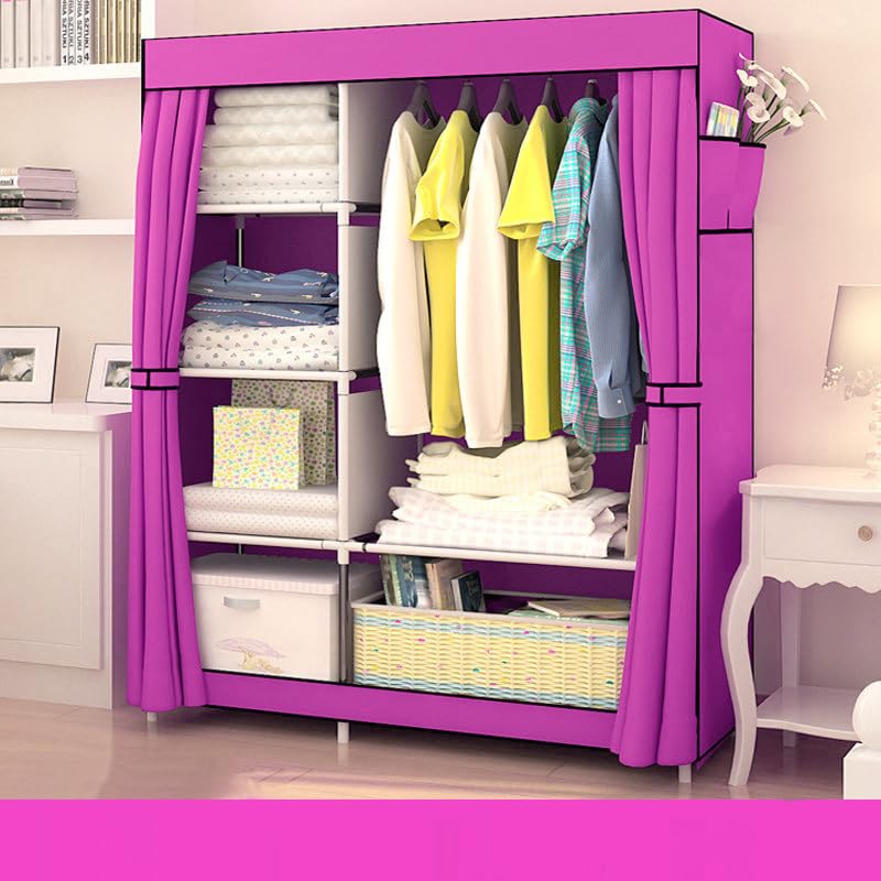 Kuber Industries Foldable Wardrobe for Clothes|Non Woven 2 Door Portable Clothes Rack|4 Shelves Almirah for Clothes (Purple)