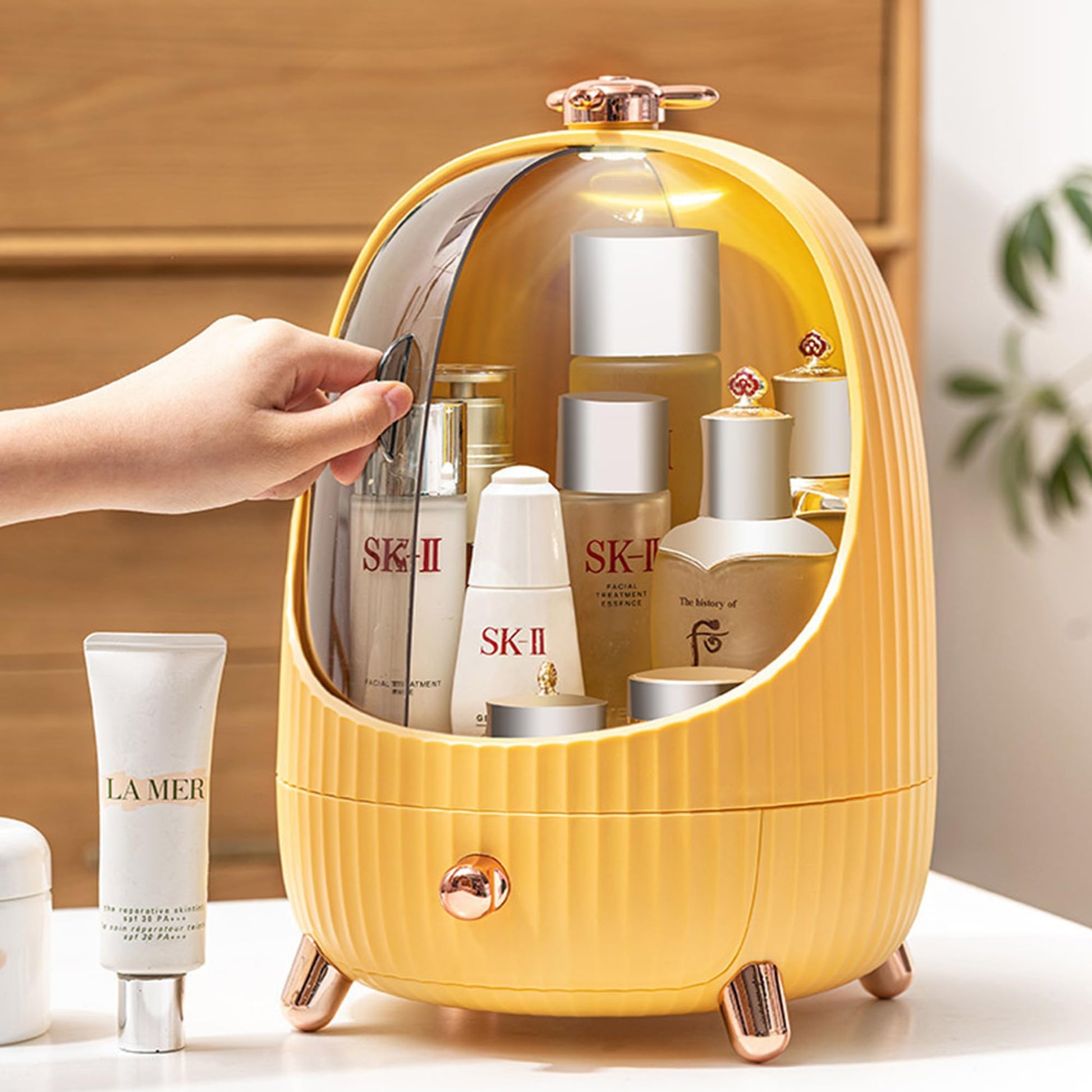 Homestic Household Cosmetic Organizer Storage Box | Cute Modern Look | Plastic Storage box for Brushes, Eyeshadow, Lotions, Lipstick, Nail Polish | 1029YL | Yellow