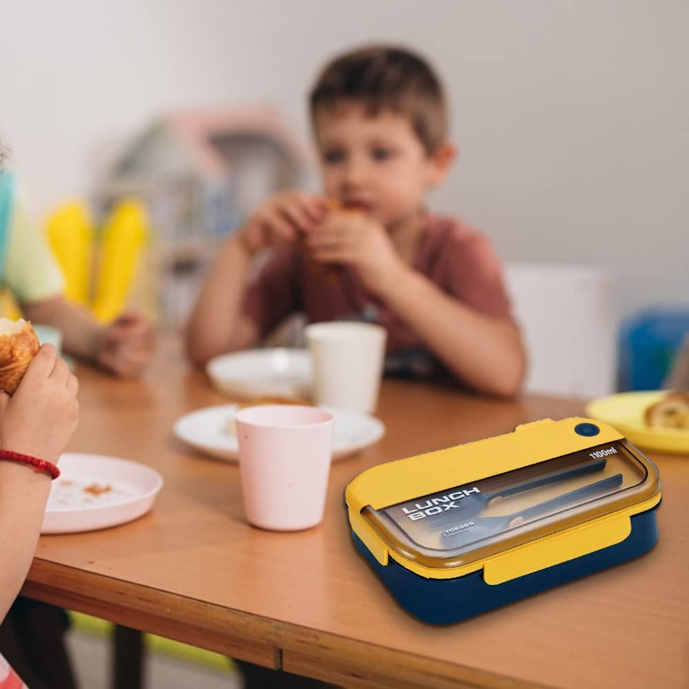 Kuber Industries Insulated Lunch Box for Kids & Adults|Premium Food-Grade PP Plastic|Leakproof & Spill Proof|Dishwasher & Microwave Safe Lunch Box|1000 ML|HX0043128|Yellow & Blue