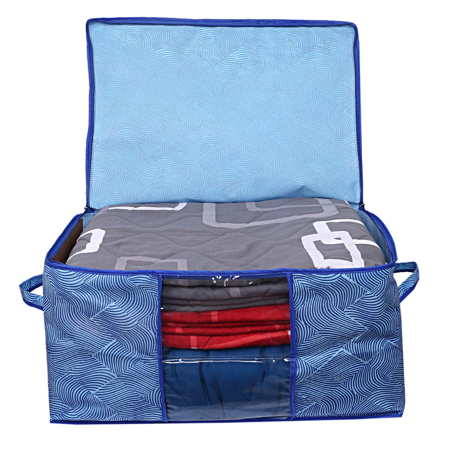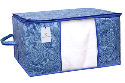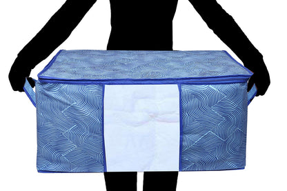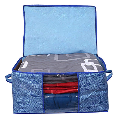 Leheriya Design Rectangular Underbed Storage Bag|Storage Organiser|Blanket Cover (Royal Blue, Non-Woven)